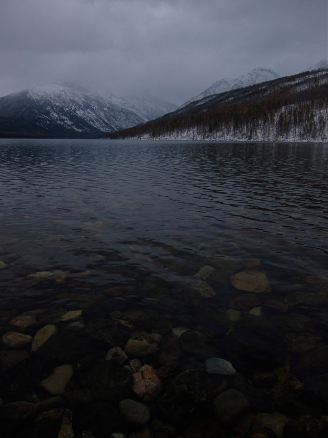 As a counterpoint to the previous two days slow and coldish walking through the forest, yesterday I decided to celebrate yet more new snow with a fast and coldish ride up to Kintla Lake in Glacier NP, along the newly closed Inside North Fork road. The dirt road up from Columbia Falls was a mess, with more snow than I had expected (we got none on our end of the valley), but I was nonetheless optimistic that there wouldn’t be enough snow to make my route unrideable on the Karate Monkey.