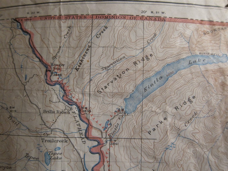 What is today only a trail north from Kintla Creek to the border was once a road: you can still see the tread today in places, as well as the way it’s routed though the drainages. The trail over Parke Ridge into Parke Creek is also long dead.