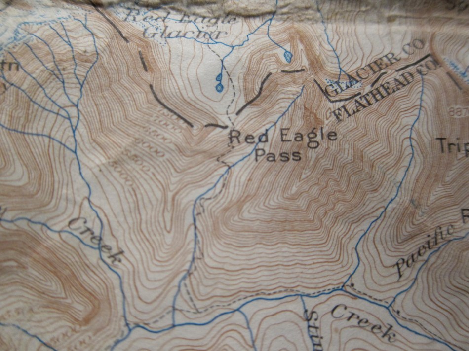 Reportedly the Red Eagle Pass trail has not meaningfully existed for quite some time, and was a major pack-route during the time horses ruled the backcountry. This bit of beta will prove crucial to a major project this summer.