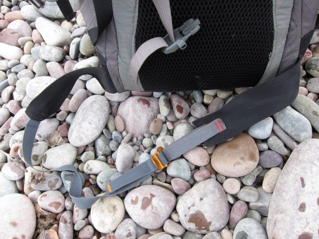 I also revised the hipbelt setup on the race pack. On our Many Glacier trip a while back I slipped on some ice coming down on to the lake, and landed square on the back of the pack. This ripped out both side attachments, which I had forgotten to bartack. Oops. It did give me the opportunity to simplify the design, as the 7″ width of the back panel made a complex hipbelt unnecessary when trying to achieve a full wrap. The above arrangement works great. I also bought some of these, specifically to replace the plastic 3/4″ buckle on the waist belt. The alu hook is secure, effective, and bomber, while the narrow belt eliminates the belly pinching I get from using anything bigger than a 1″ waist buckle while cycling.