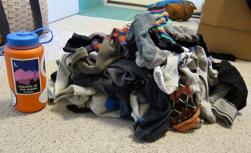 Part of my sorting was to collect and then go through my immense pile of socks. A few of them are over five years old, but most have accumulated during that manageable chunk of time since we moved to Arizona in 2006 and made adventuring a serious second full-time job. What follows is a partial discussion of what got binned, what I’ll but more of, and why.