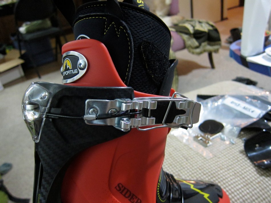 The Palau liners have a funky but effective lace; pull to tighten and stick the velcro tab to close. Without molding they’re a bit big for my low volume feet. The oven and insoles should take care of that. The plain black foam around the ankle and achilles is more flexible stuff, though not as flexible as the neoprene used in the TLT5 liner.