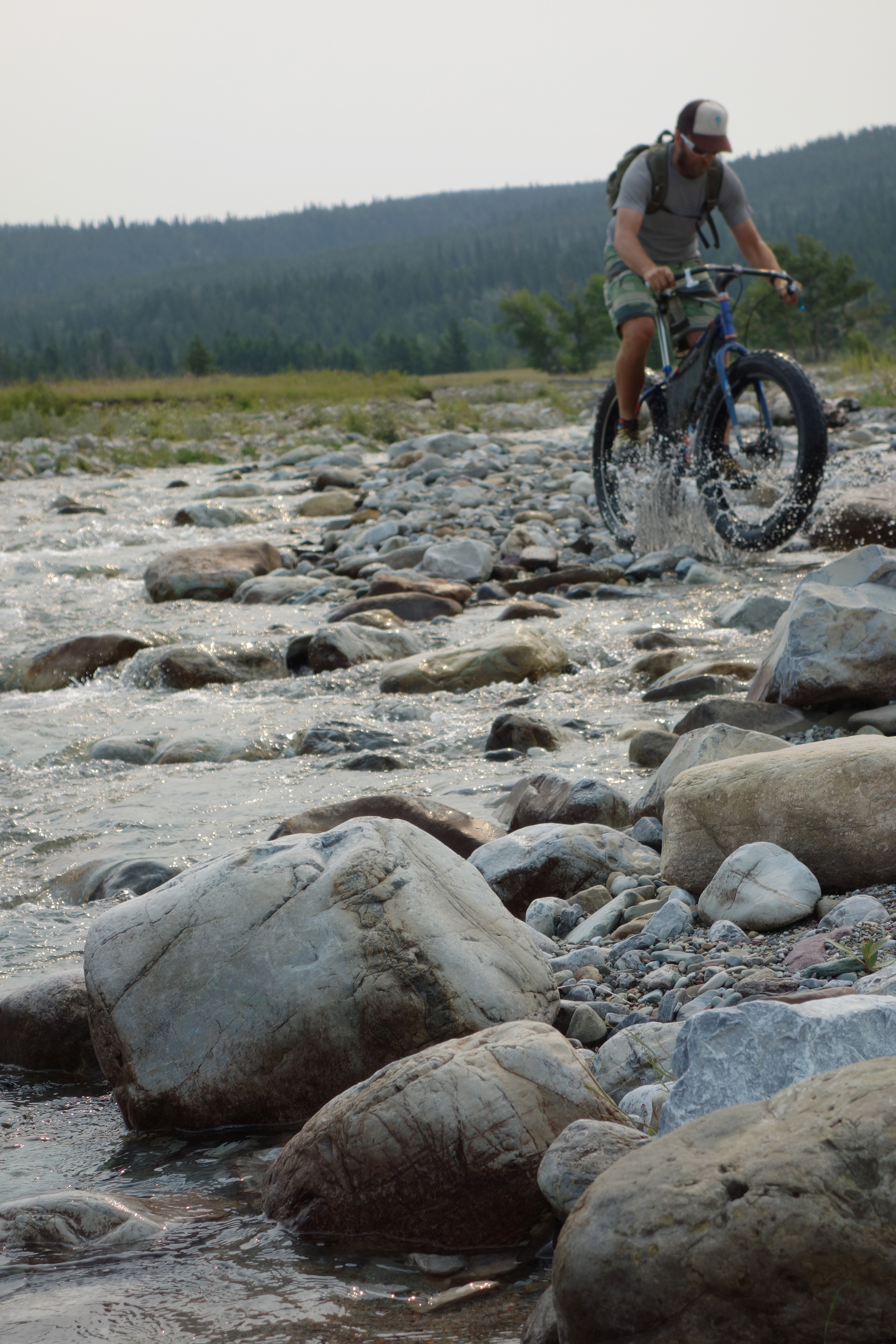 The beginning of the Wishbone Trail is fantastic, easy singletrack, excepting a stream crossing (above) and some heinous clay mud sections in the thicker aspen groves. We inadvertantly poached the final 4k to the Wishbone dock junction, as our NatGeo map and the TH sign both said it was still open to bikes. The sign at the Vimy Peak junction had been altered to say no bikes, but when this obviously happened with a hand file I don’t take it too seriously. The current Waterton brochure, perused the next day, corrected our error. Sorry Waterton.