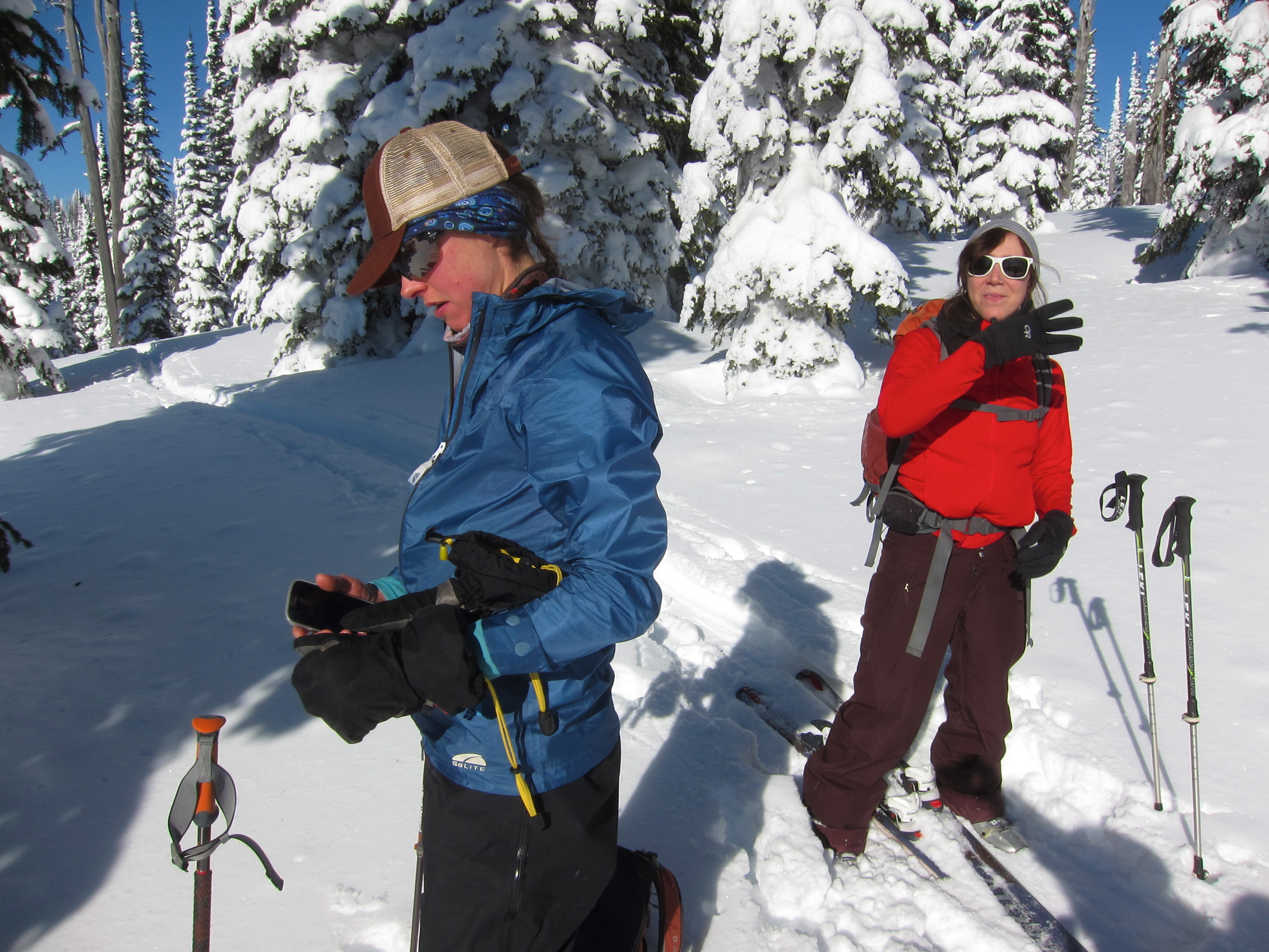 We packed some many moments into the previous two hours that I almost didn’t believe my watch. Lauren thought we would be getting out early, and I warned her not to tempt fate. Our exit strategy was based on a 3 mile jaunt along a snowmachine and groomed XC trail back to the ski area, and the bus. Between our perch on the last ridge finger and said road was 1.2 miles of linear and the dreaded drop below 5000 feet, into the low snow and thick brush.