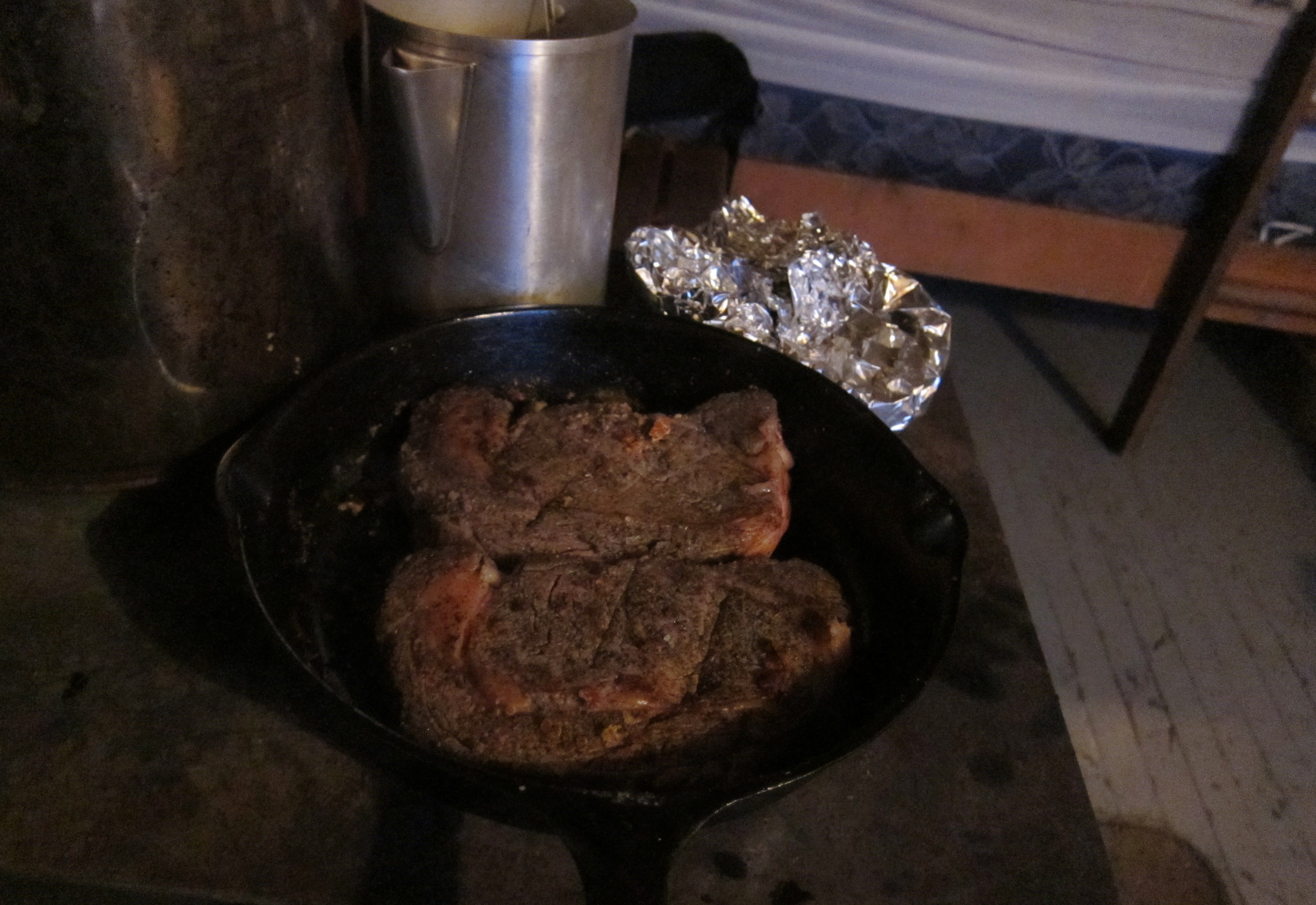 The afternoon we had skied in, done cabin stuff like chopping wood, melting snow, and playing battleship. We then ate a lot and went to bed. That morning we got up, skied out, and I went to work.