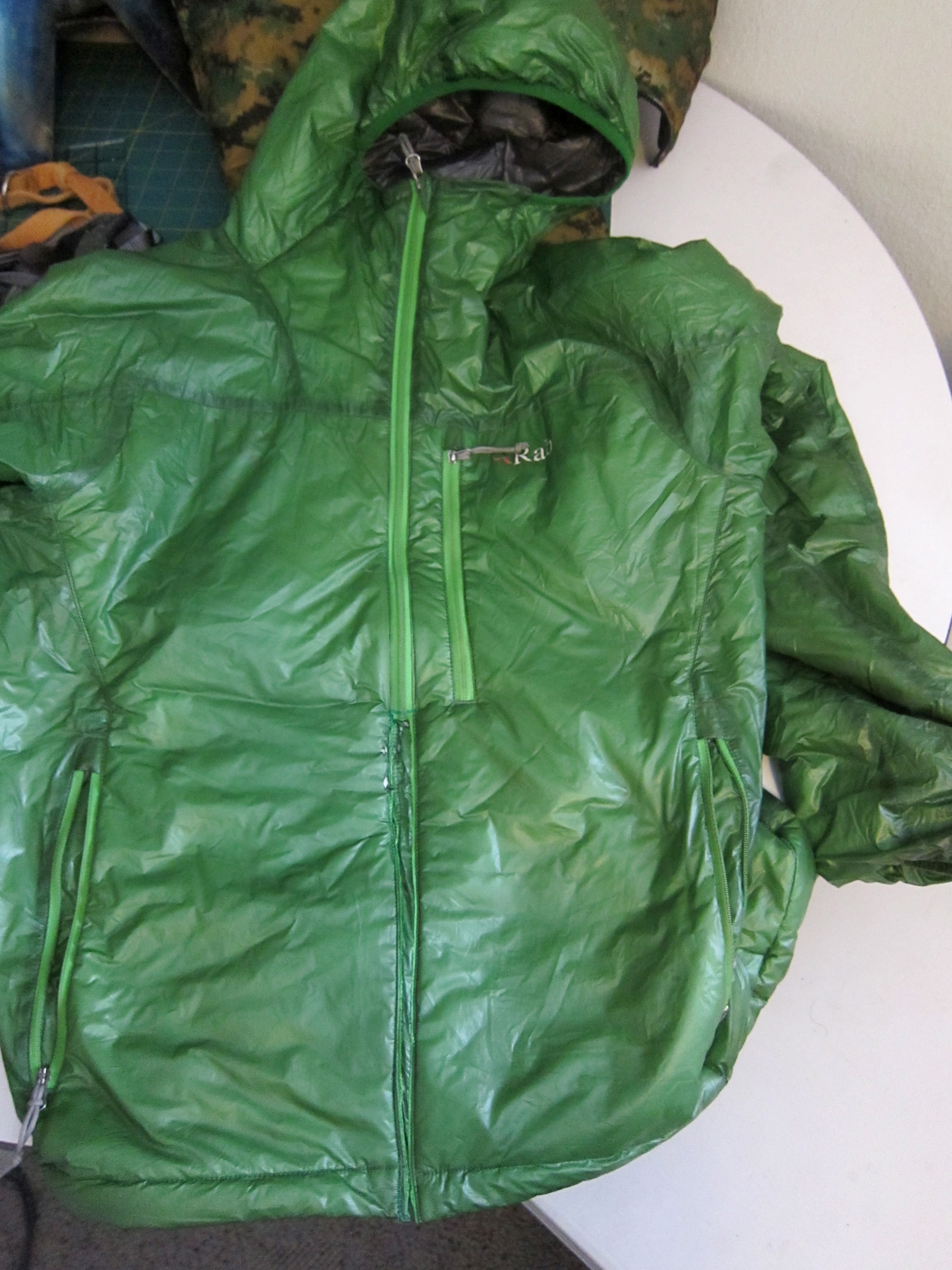Some makers will replace the zipper. I’ve had good luck with Patagonia doing this under warranty. Anymore it’s too much of a headache to be without the jacket for weeks. With some coats it’s worth replacing the zipper. On something like the Xenon picking seams would be a nightmare, due to thin fabrics and the appropriately tight and sturdy stitching. The jacket has a number of ember holes in it already, and the Primaloft One probably has until the end of 2014 until the insulation is shot. Thus the easy, if messy, answer: turn it into an anorak.