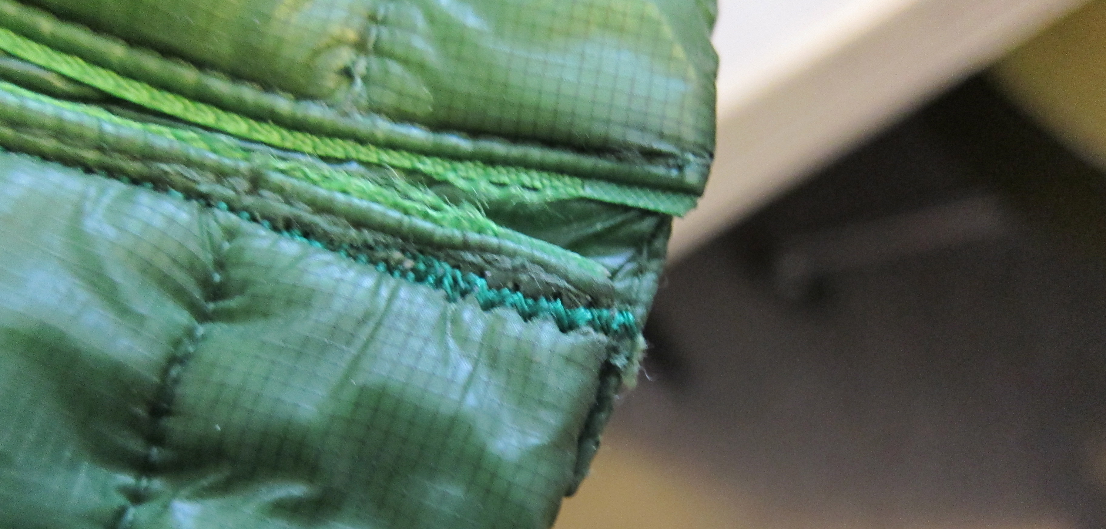 Finally, cut the zipper out, carefully. Fuse the sides, very carefully, with a lighter. As can be seen above, this often goes a little wrong with uber-thin fabrics, but this isn’t a big deal with synthetic insulation.