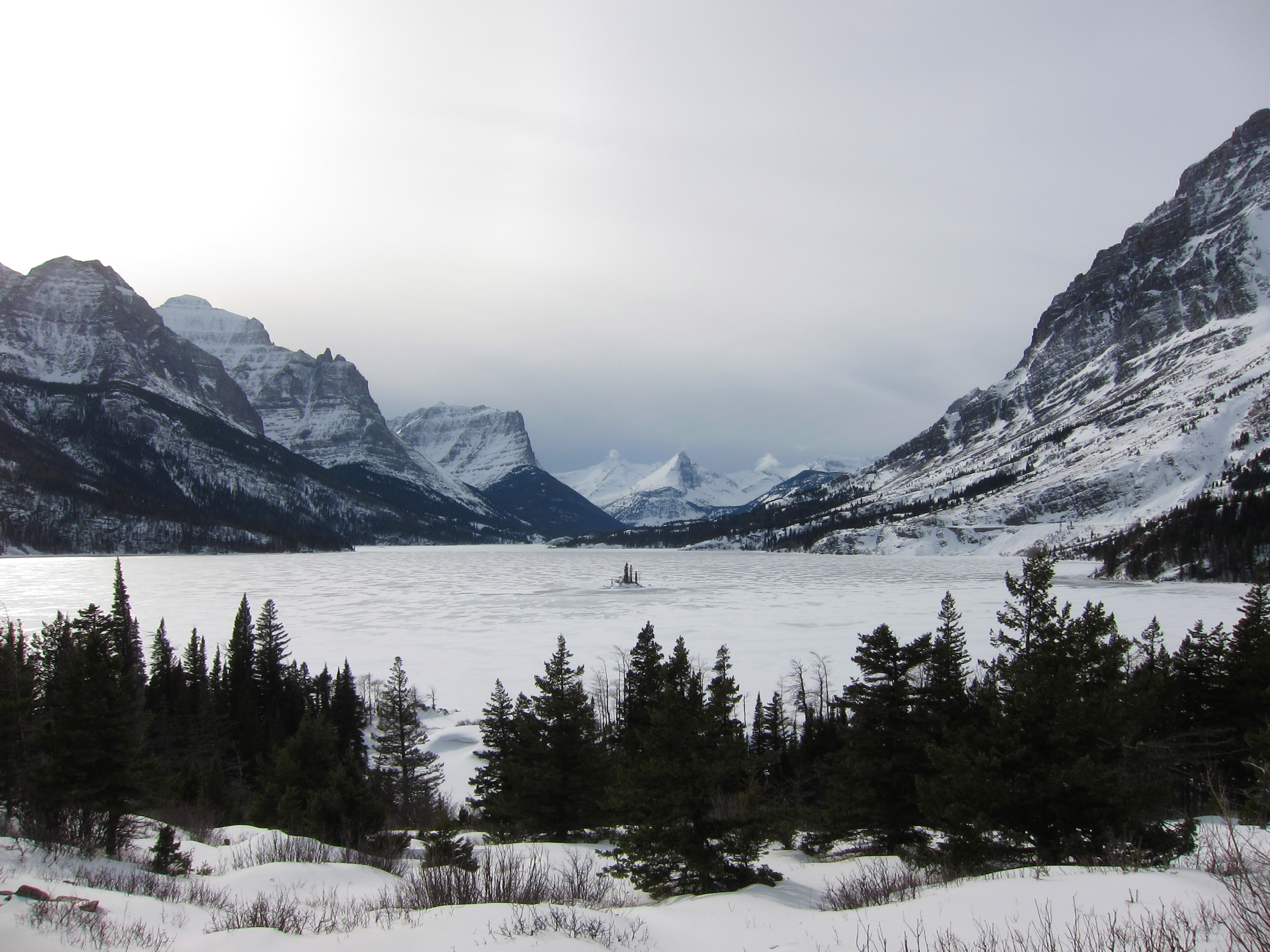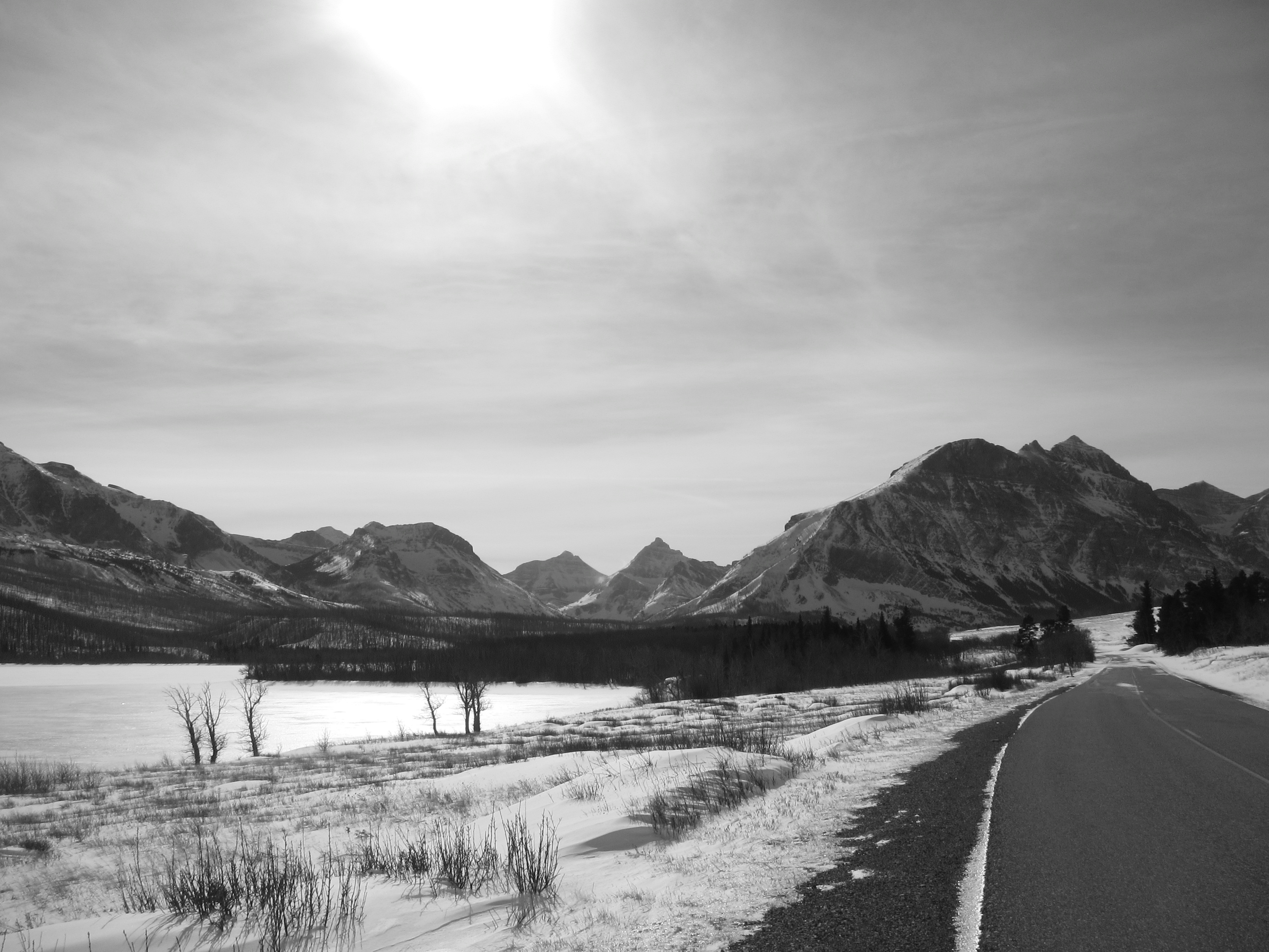 St. Mary in winter has a special fondness for me. The road is so crowded and hectic in summer. It’s narrow enough that looking at the scenery while driving is not really possible, and I’ve never been inclined to bike it along with the cars, so skiing it is.