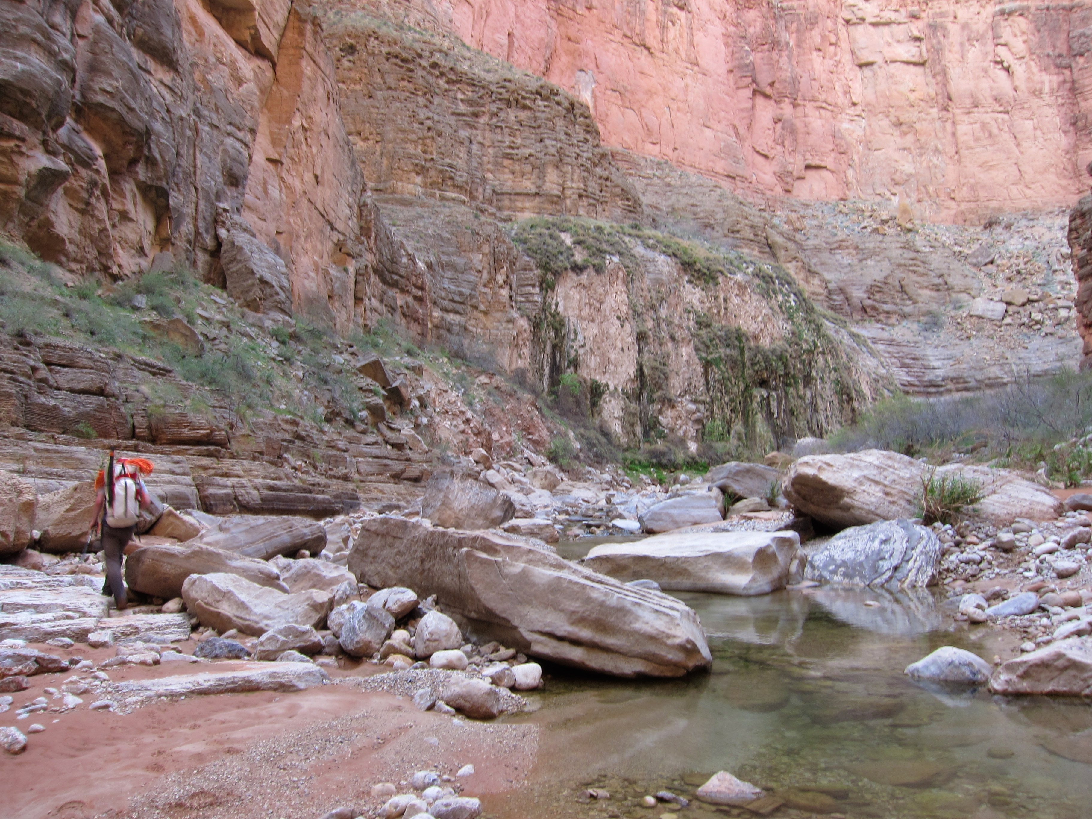 Soon enough we were walking the beach and then up the stream into Kanab Creek. Flannelmouth sucker were spawning, which provided unexpected entertainment. Aside from burros, tons of birds, and lots of sheep shit, this was our only wildlife of the trip.