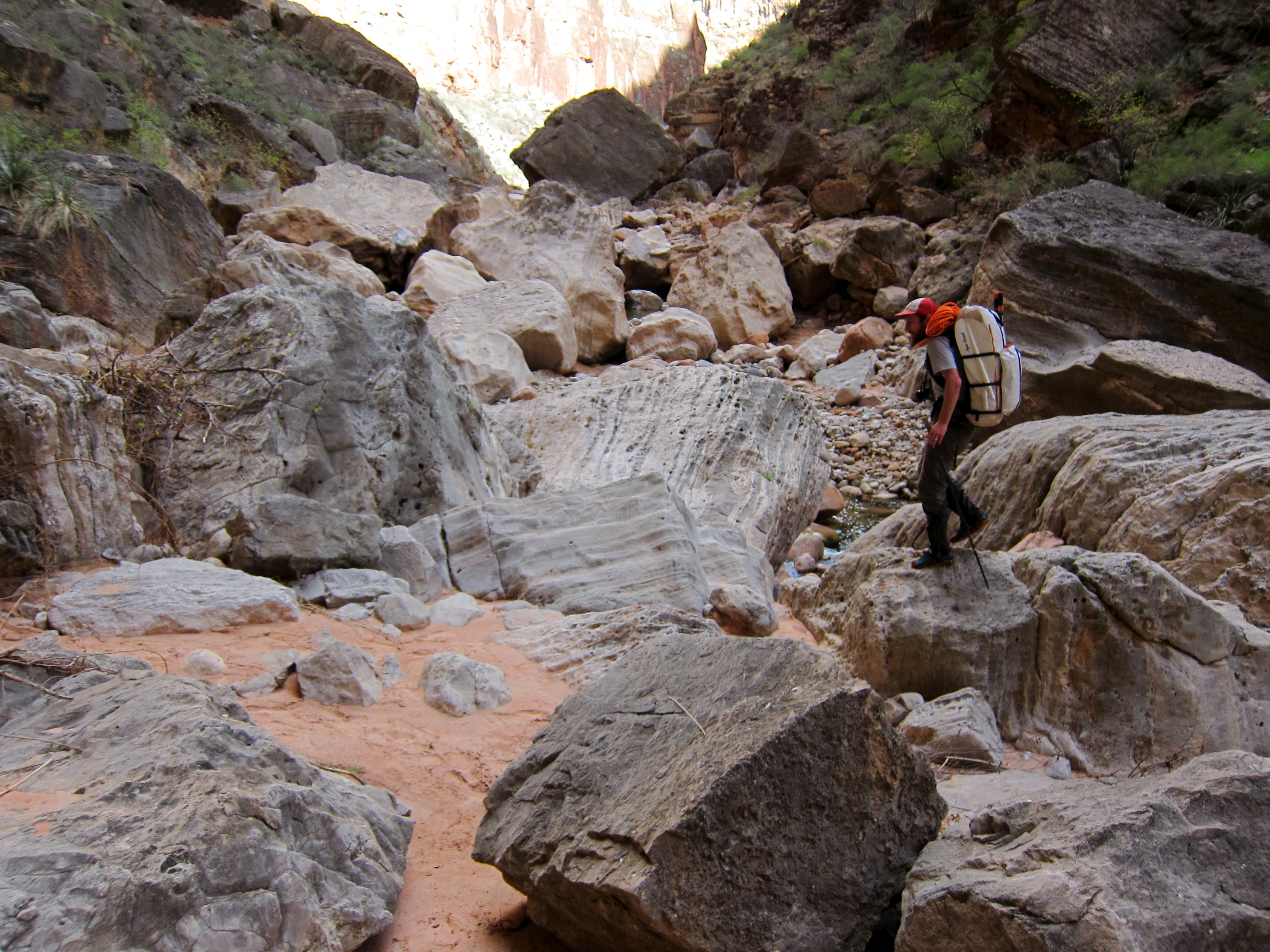 More gravel walking, more cobble hopping, more downclimbing through and around big boulders.