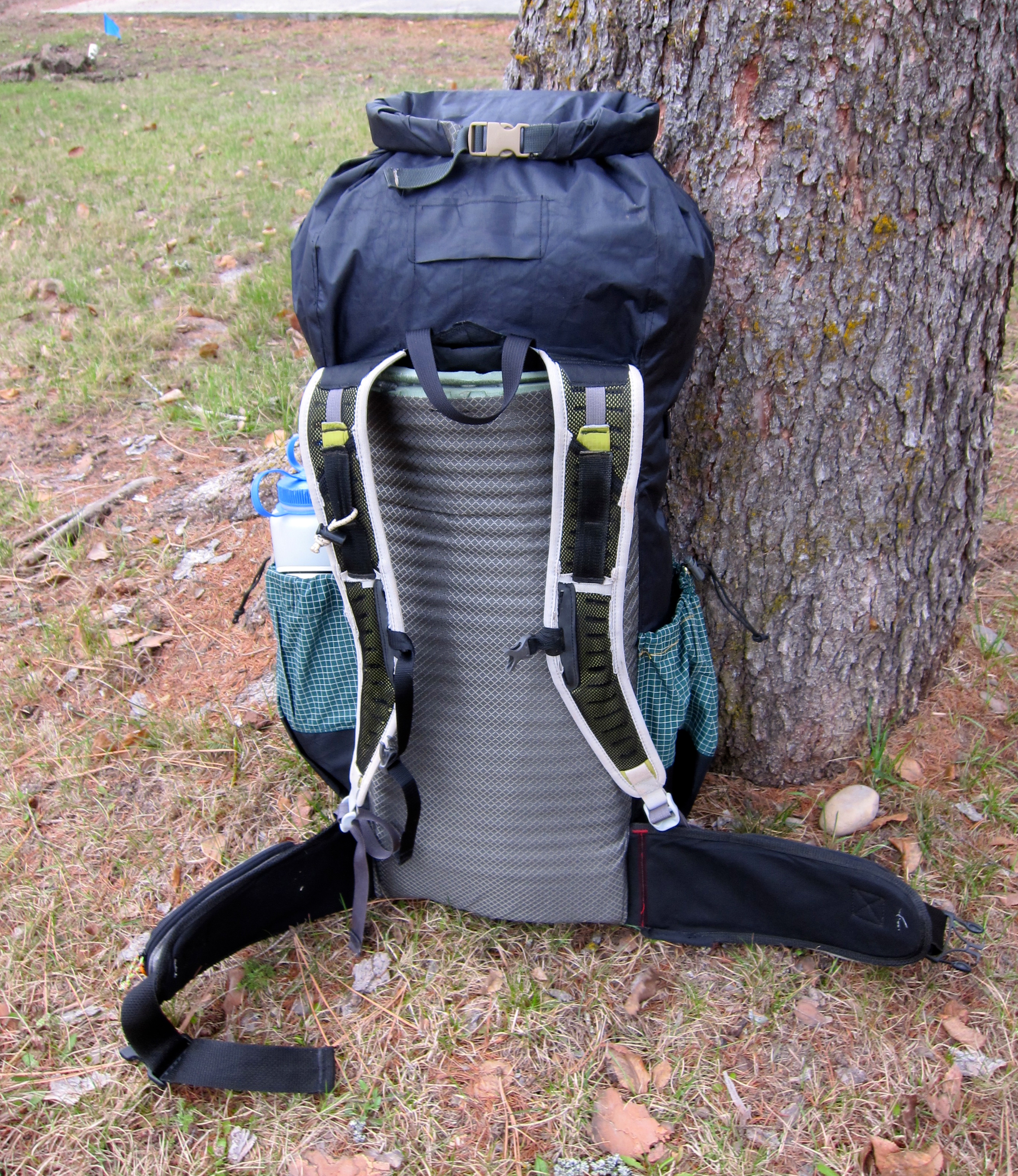 I wanted to do a couple things with this one. First, experiment with 5.3 oz/yard hybrid cuben fiber. Second, fix the mistakes/things I didn’t like about this pack. To whit; a too-short torso length (you’d think I would know better), less than ideal shoulder straps, a bit too little space. Third, build with the minimal feature set I thought would do the job for, well, everything.