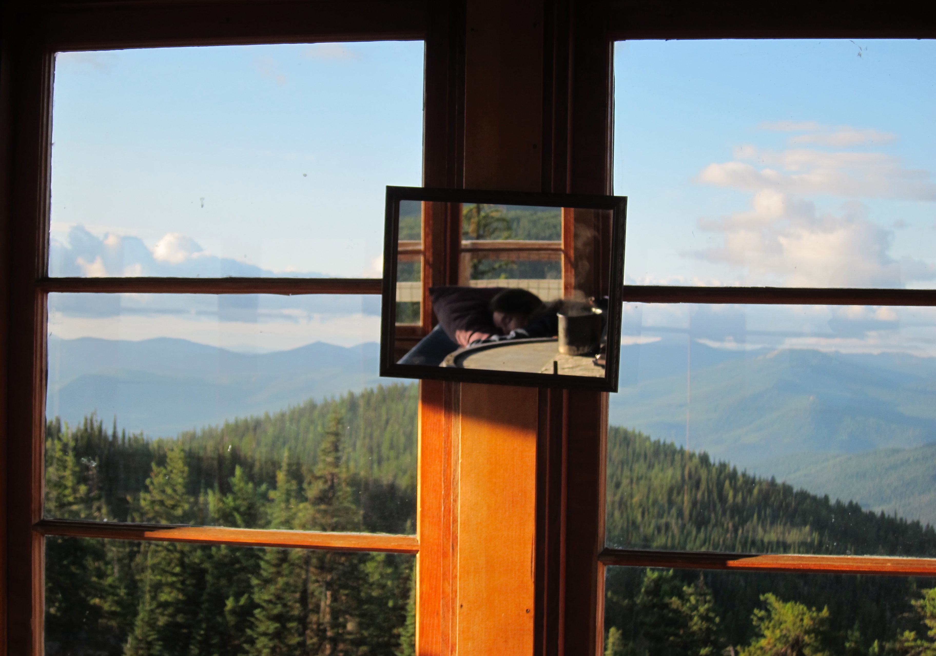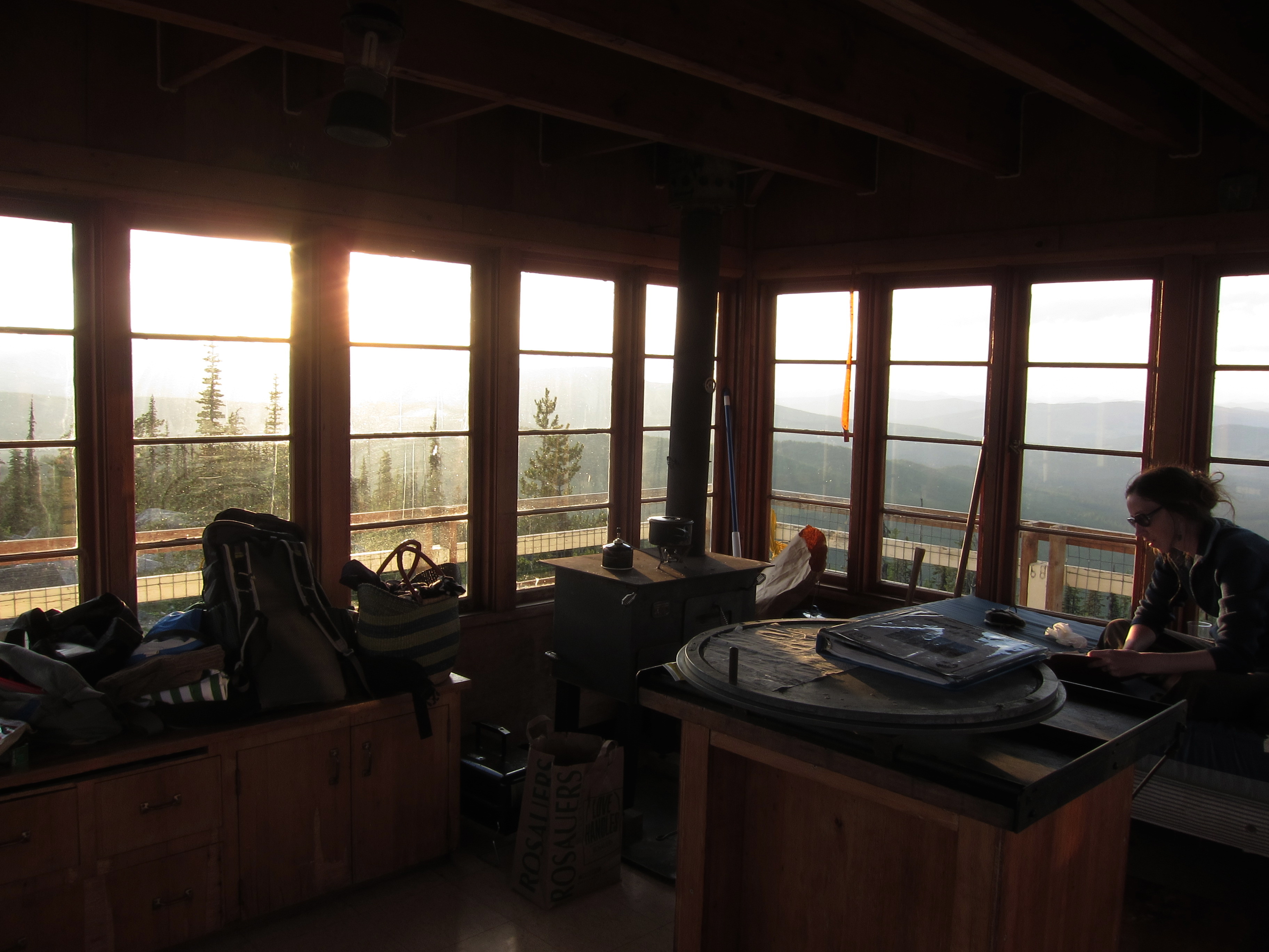 We’ve done quite a few cabin trips now. They’re always pleasant, but plans for hiking or skiing in the area always end up watered down in favor of reading, hanging around, cooking, eating, and just looking. Given their original purpose, fire lookout towers are perfect for this.