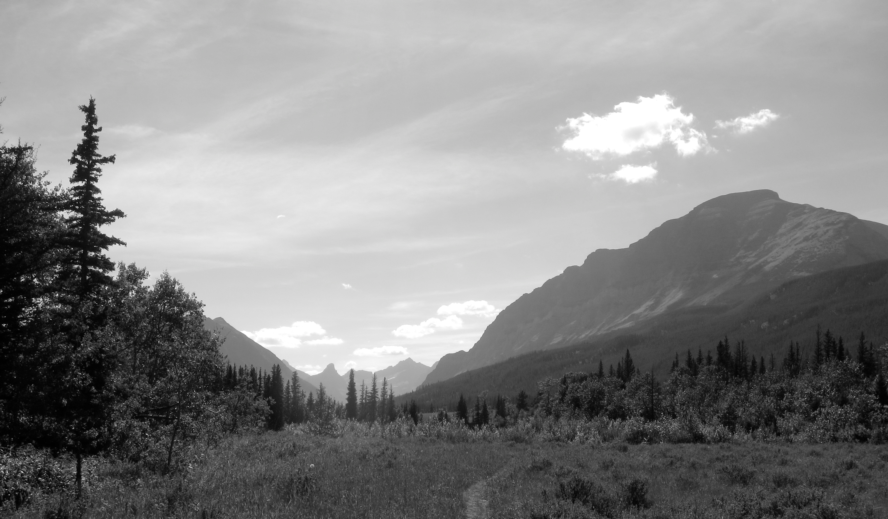 The first time I went in the normal way, down from the highway and along the river to the meadow and the ranger station, it was winter and the wind and snow and rain howled for 72 hours. With the whole length of the meadow for acceleration, precip forced its way into every crack of the cabin, and we stuffed the door gaps with folded paper to seal out drafts. I left wondering why the hell the early 20th century pioneers, who were usually pretty damn clever, had built the fucking thing in the windiest spot available.