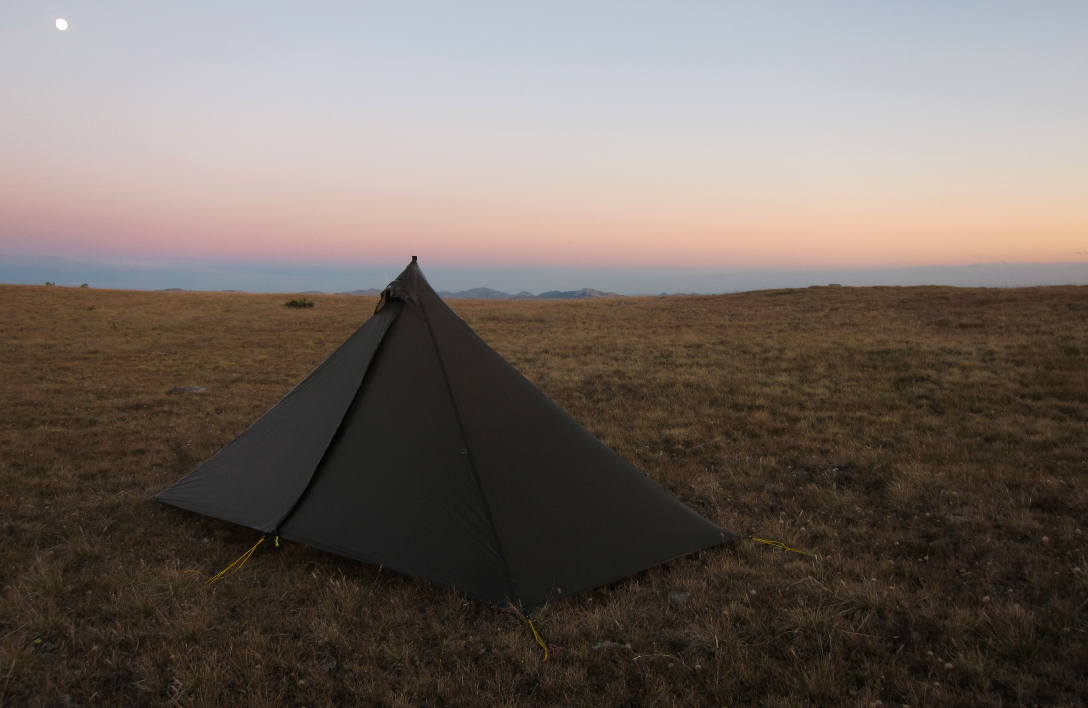 Camp that night was one for the best-ever list; a patch of tundra right at 10,000′, at the head of the drainage system I’d been hunting, 20 feet from a massive cliff. The NPS boundary is probably 4 feet behind my tent, above, and it was an odd challenge to pick a rock-free patch of grass which wasn’t in the park. One of the weirder things about hunting this area, as the boundary trail up on the ridge is almost unavoidable when moving between basins.