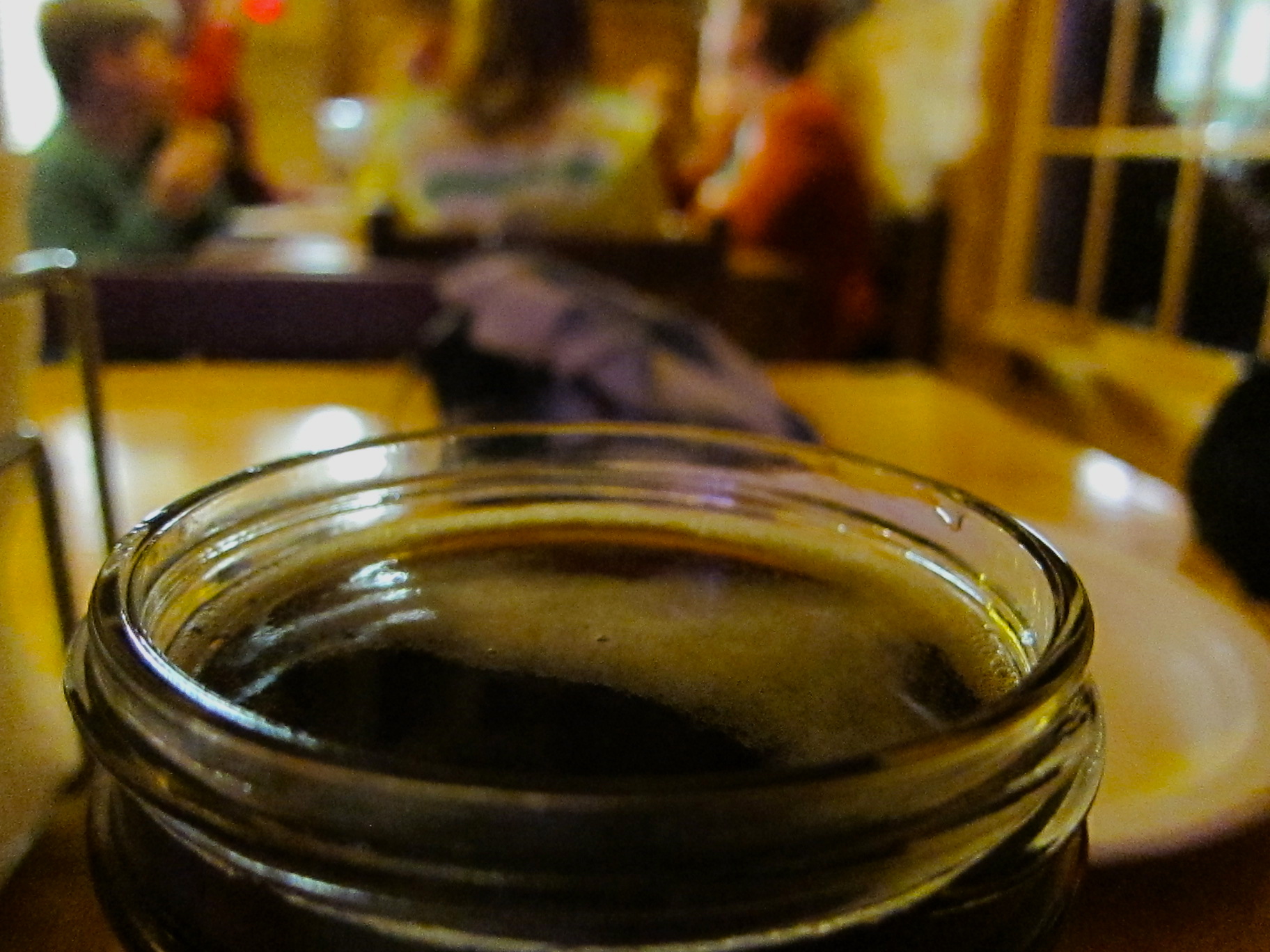 The Lights has a good kitchen, beer on tap, an excellent whiskey selection, and a very old cash register which still works. We stood around the wood stove, warming our feet, drinking beer, and talking to friends until a table opened up.