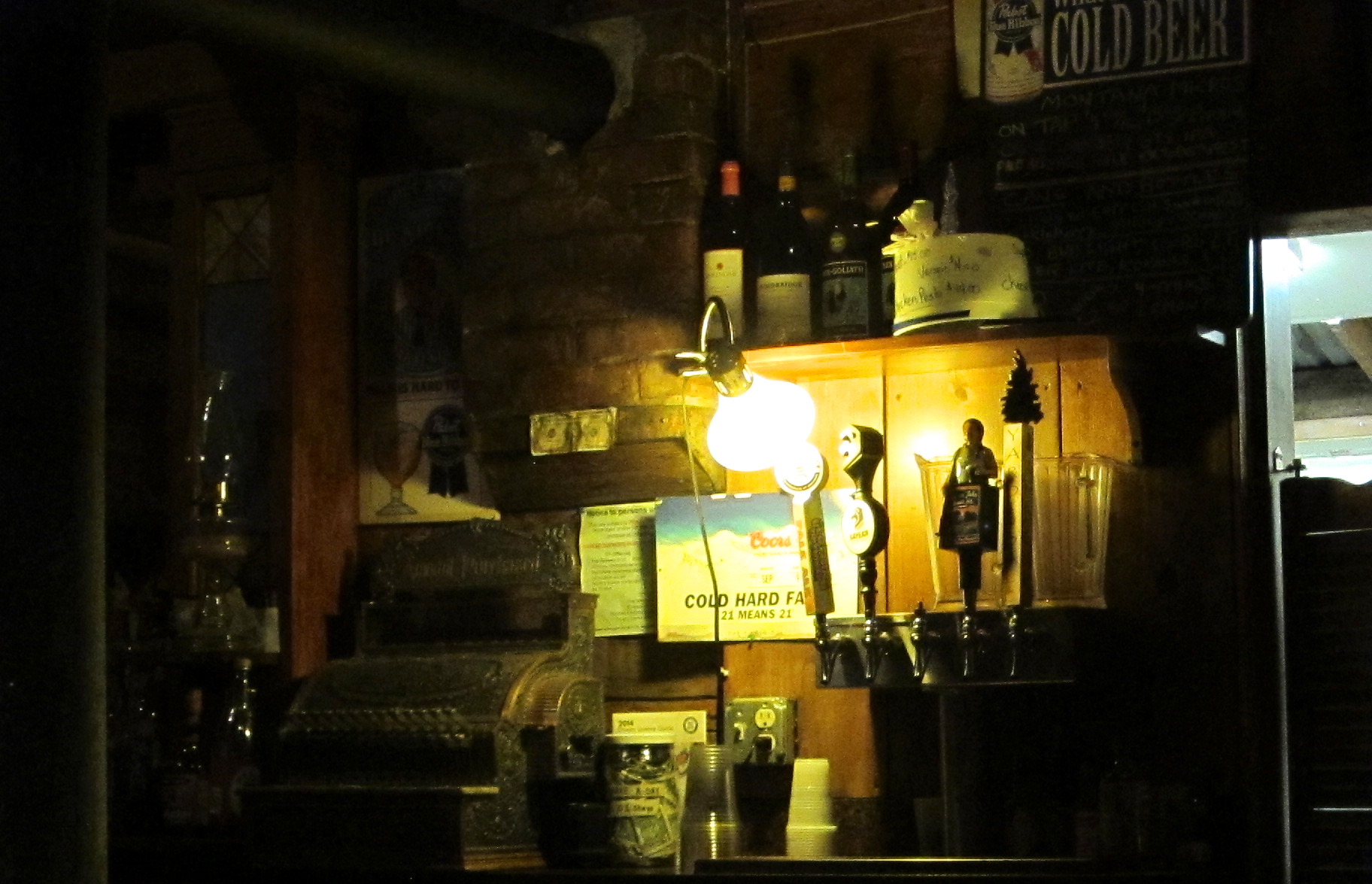 The Lights is an old cabin with a kitchen and restroom grafted on to the back. In mid-summer, the bar and tables inside are empty, the picnic tables out front in the shade full. On this cold and clear September night the outside was empty, and the small bar and five tables full to overflowing.