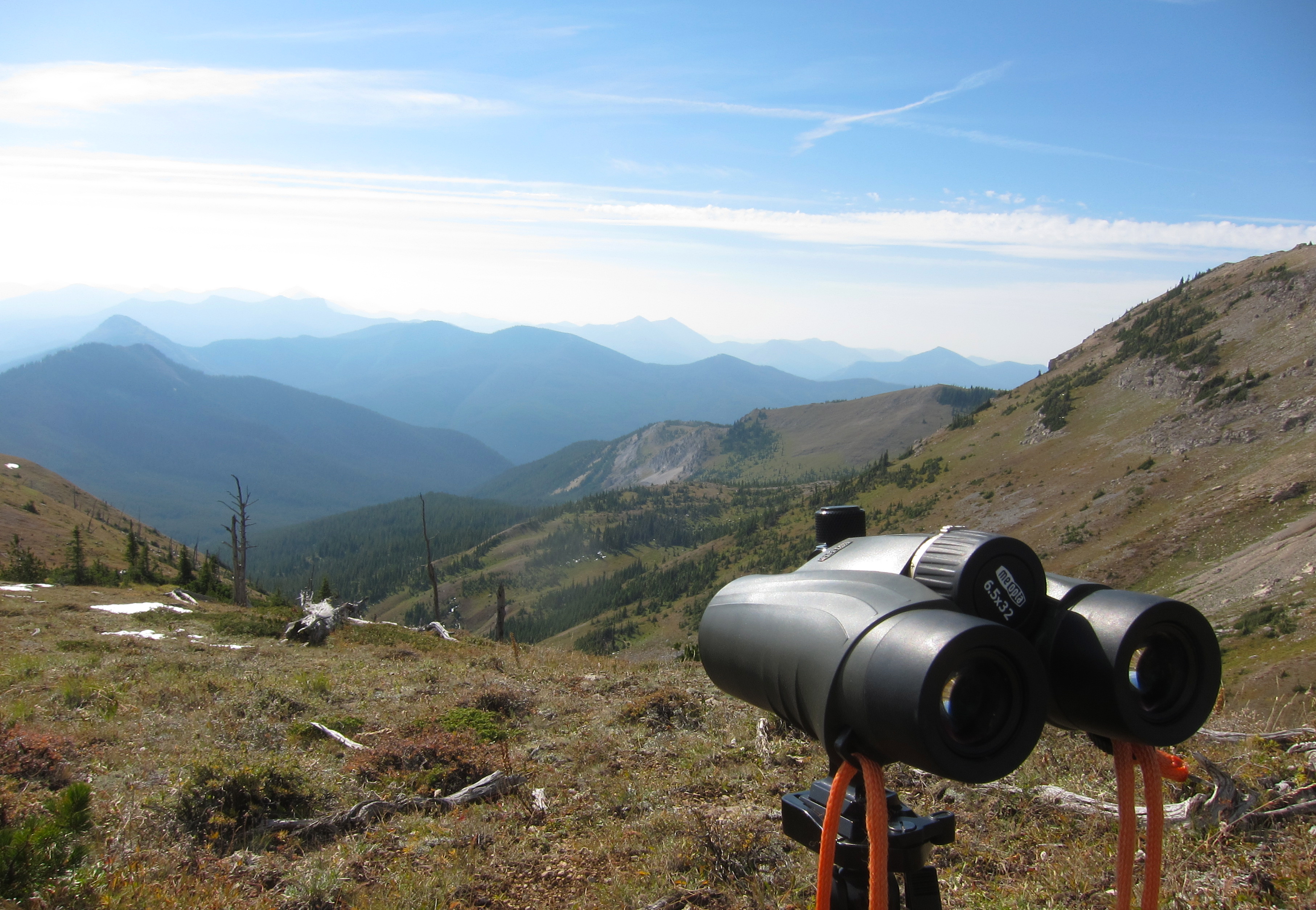 I really like the low-power Meoptas. They have tons of eye relief, and are thus easily useable with my glasses on, and have a massive field of view. They make it easy to move your eyes, not your binos, when scanning terrain. Only bummer is that the diopter adjustment does not lock. All this seems like a lot of crap to carry, but it really is borderline essential for western hunting.