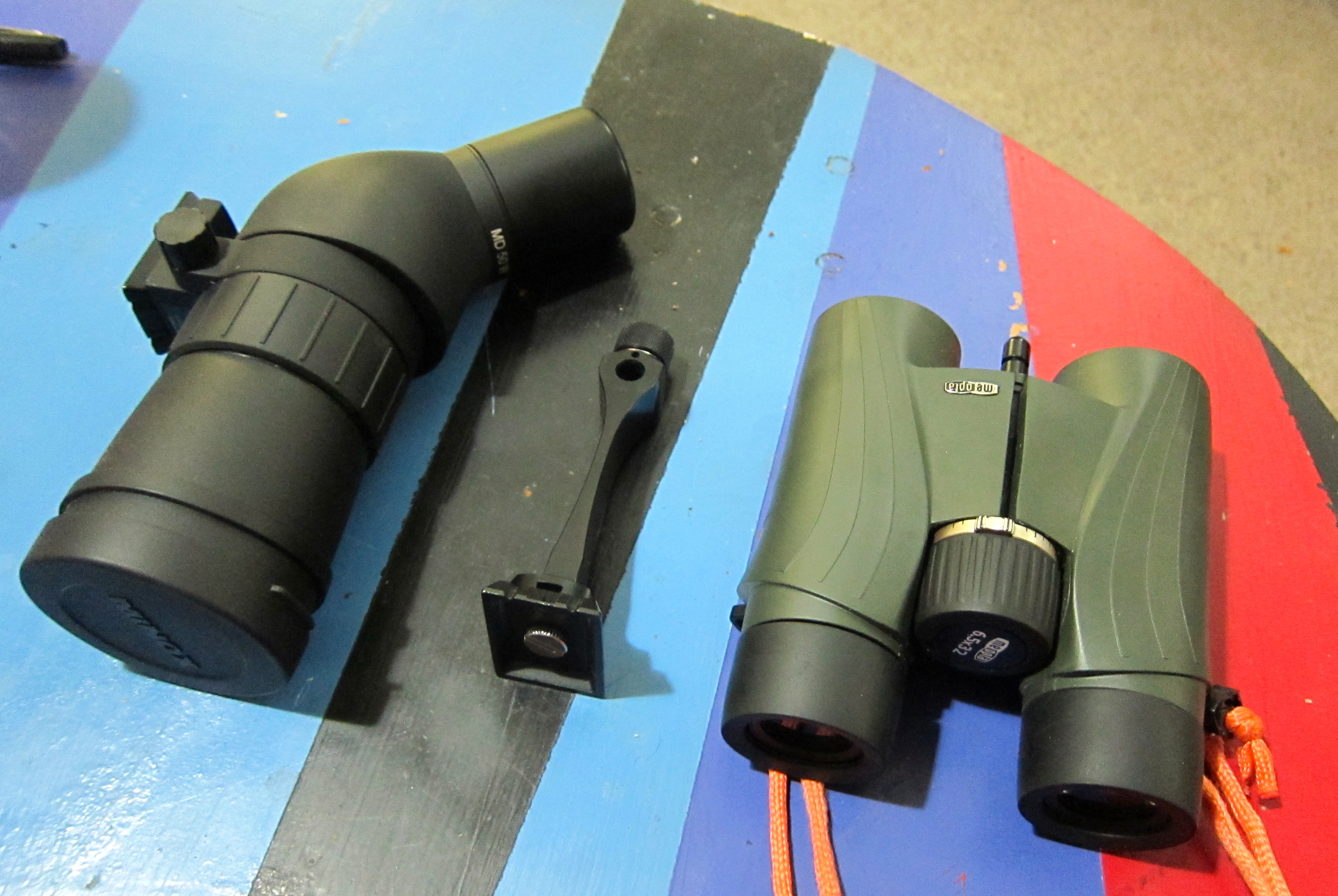 I bought a full array of new optics for this fall: Meopta Meopro 6.5×32 binoculars, Minox MD50 spotting scope, Vortex Summit SS tripod, and the Outdoorsmans tripod adapter for the binoculars. The Summit has been problem free, and the compact collapsed size very nice. I’ve yet to come close to using it’s full height, so naturally the thought of something shorter and lighter enters my head, but as that isn’t possible without spending quite a bit more, I’m content. The Minox was a compromise, mainly financial. I like the size and weight (22 ounces). The 30x zoom is really not enough, and the optics could be clearer. Good enough, but it will need to be augmented with a big brother at some point. Unfortunately, that big brother will cost a grand or more.