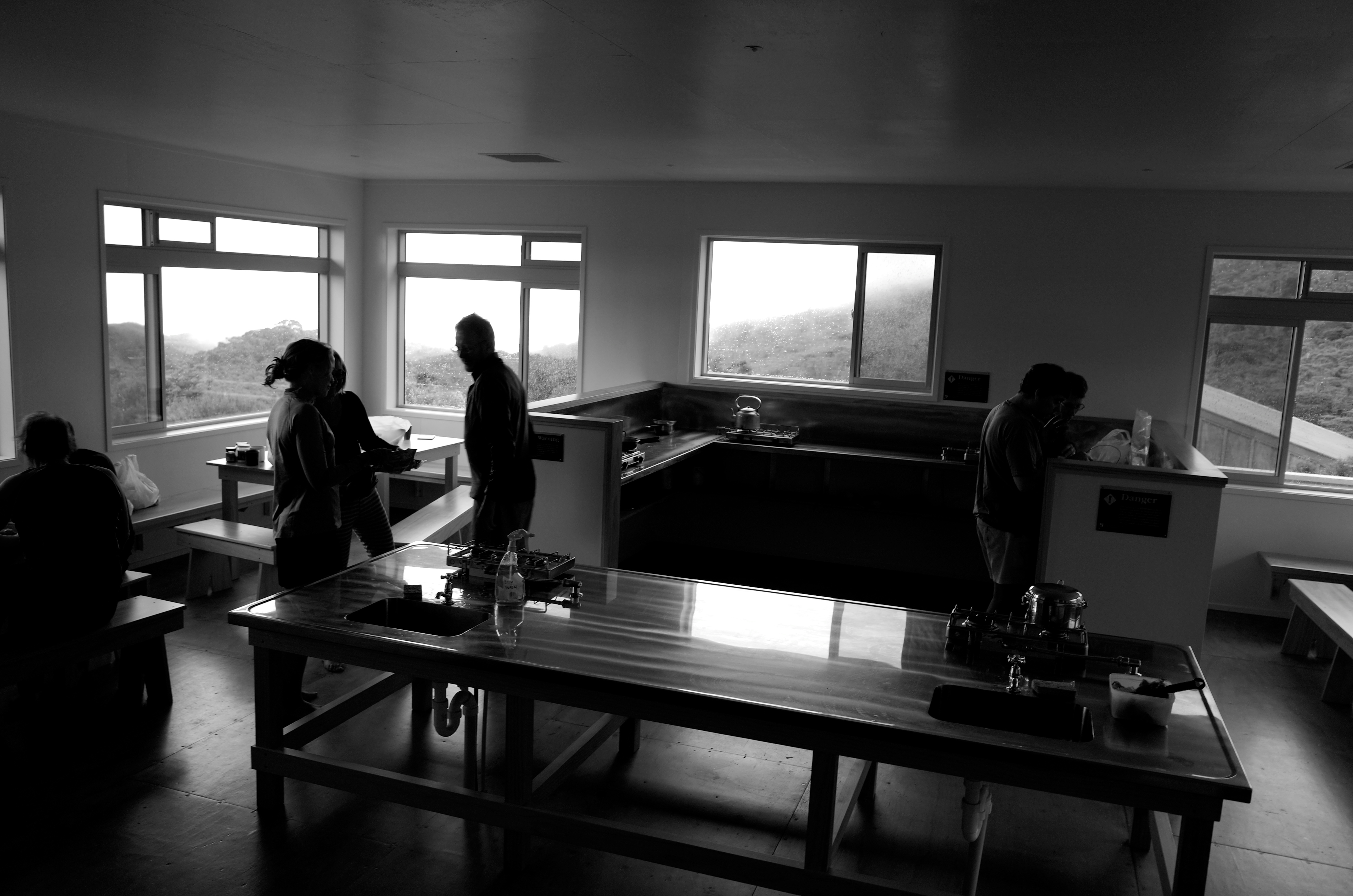 The three huts we stayed at just happened to be three of the newest huts in New Zealand, and were all built to very high standards by a local contractor. Bunks for two dozen, gas cookers, running water from a rainwater tank, and coal stoves are standard features. If ever there’s a good time to camp at such a hut, it’s after a day of soaking rain, and we took advantage.