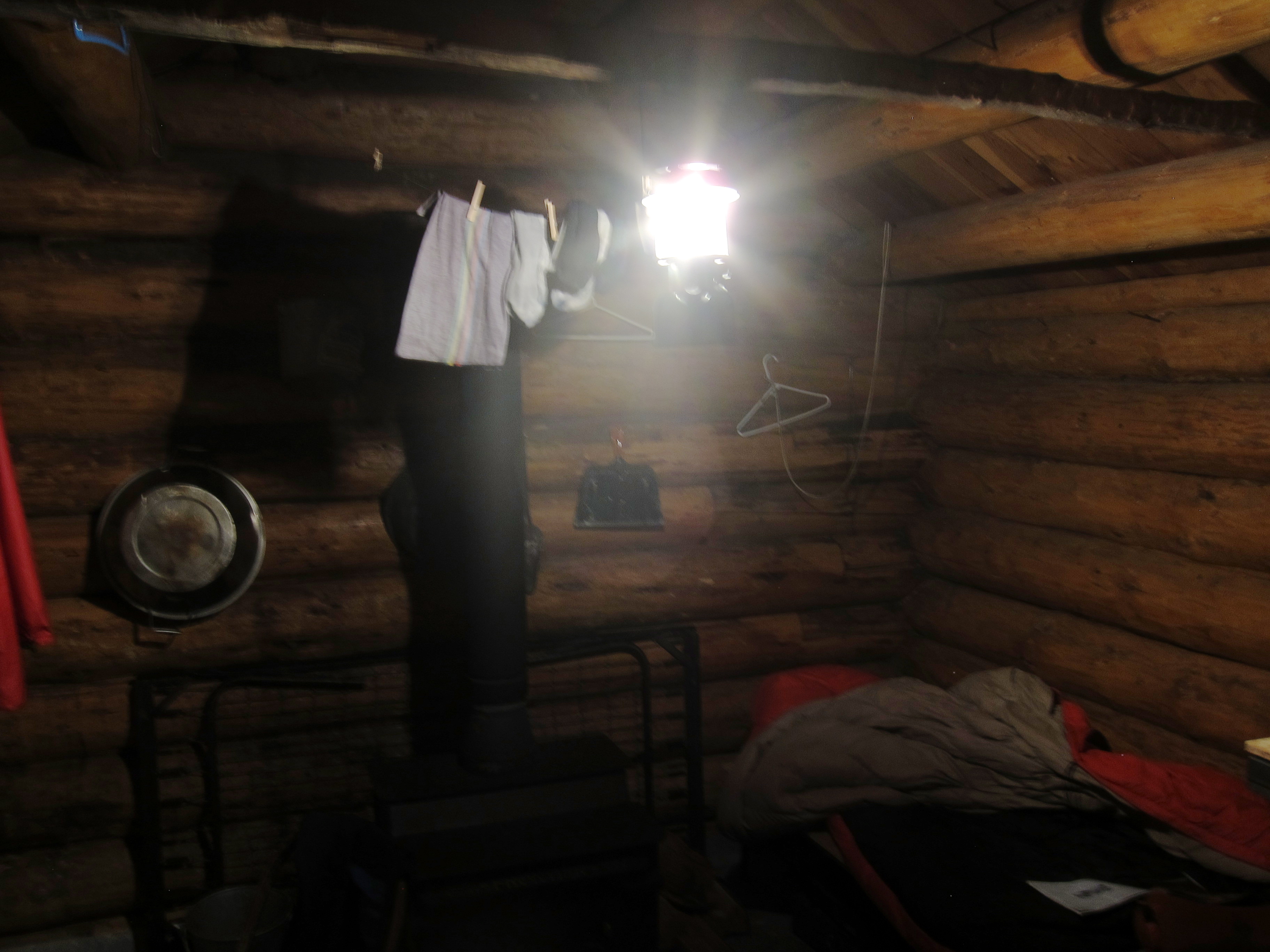 The press copy about “the historic” cabin is somewhat misleading. Yes it was built in the 1930s, possibly by CCC labor. Yes it is hidden away in a gorgeous location, and was an excellent example of the classic one-room patrol cabins, back when such things were more systematically used. But the cabin was also 100 meters from a paved road, and the vintage look was taken away by the installation of a propane range and oven inside. Oddly, no propane lights were installed, hence my wearing of a headlamp when it was still light outside, as the classic cabins have windows both small and few.