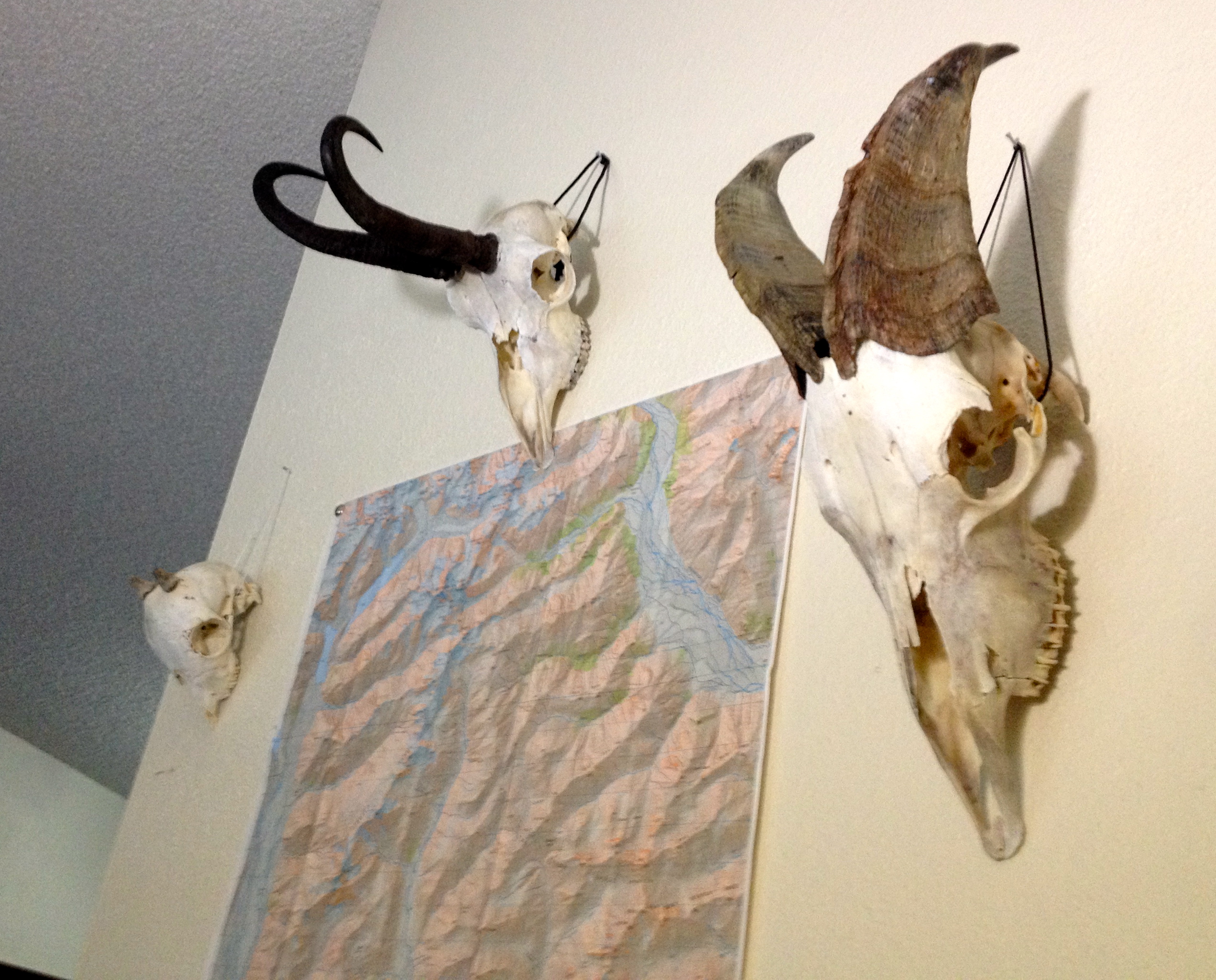 My New Zealand trophy wall from this hunt back in January. Worthy of a central display in our apartment not only because of the dead animals, but because of the way I did the hunt and who was with me.