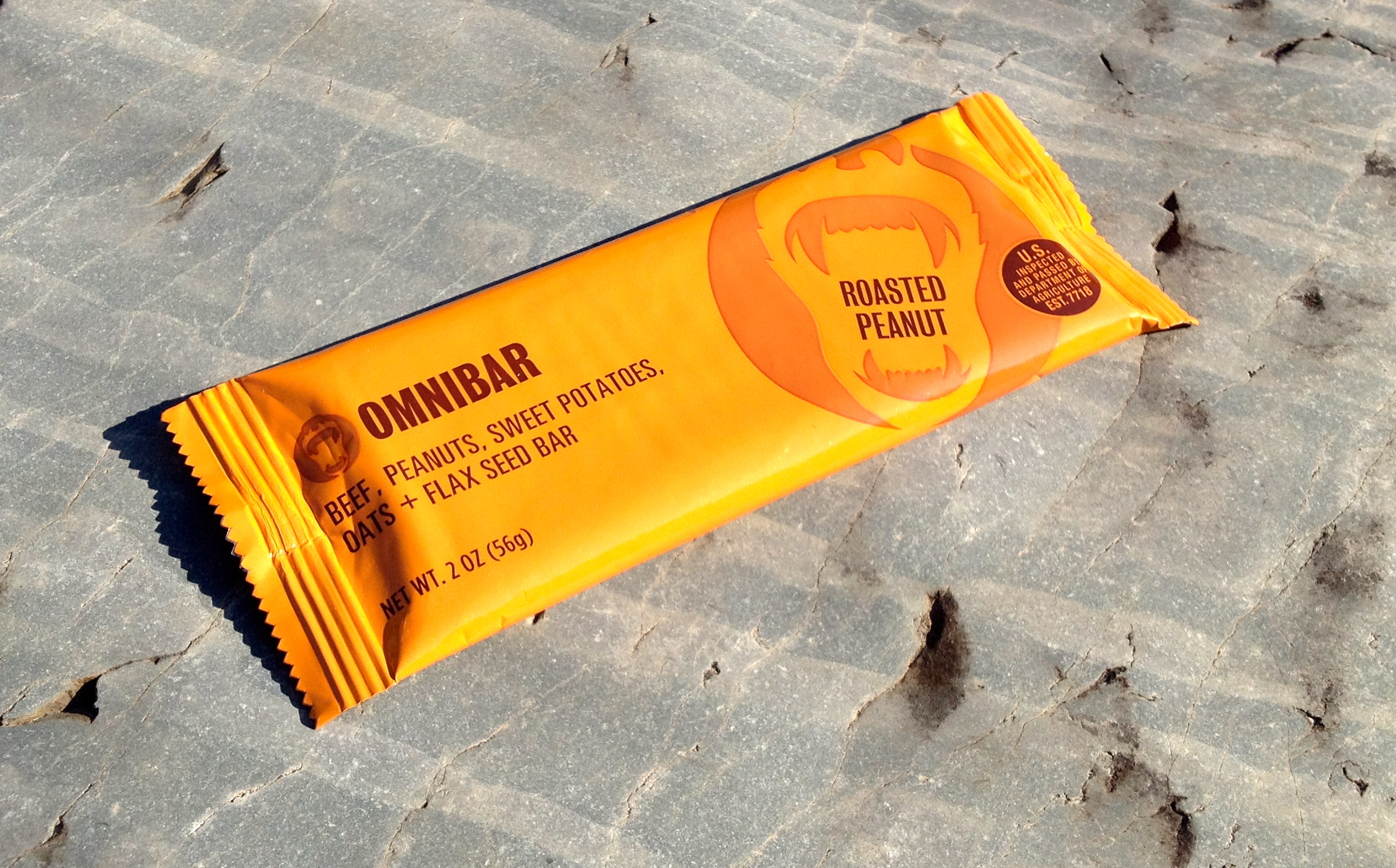 Omnibars are advertised as 65% sweet potatoes, oats, fruits and nuts, and 35% grass-fed beef from Montana cows. The company writes that they’re “…jerky plus the essential ratio of ingredients the mind and body require for complete satisfaction” which is an accurate description. Each package contains two long, thin bars which chew like 1/3 quality beef jerky, 2/3 fancy granola bar. They’re moist, but not too pliable, and don’t require a ton of water to swallow, even when you have a dry mouth. They come in four flavors, two of which (Roasted Peanut and Cranberry Rosemary) are mellow, and two of which (Chipolte BBQ and Mango Curry) are more emphatic. I like spicy stuff, which makes the later two my favorites by a considerable margin. The BBQ has a particularly pleasing zing to it. I’d vote for all the flavors to be stronger, but the current range and amplitude is probably good for appealing to a wide market.