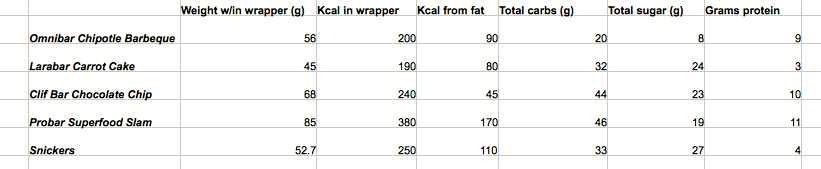 As backcountry endeavors have become for me routine, be they on bike or foot or raft, purchasing food for them has naturally become frequent and unremarkable. I keep a drawer of snacks and dinner items handy, but more often than not the next weeks trip sees me in the grocery store two days out buying food off the rack. Convenience and cost, both prioritized by the frequency of multi-day trips, have seen me eat a lot of Snickers over the years. Aside from in hot weather, Snickers are very effective, and for the US consumer their calorie to dollar to ounce ratio is unbeatable. They also have a lot of sugar, which is fast burning and therefore less than ideal backpacking food. And there is the question of the long term health and dental effects of eating so much candy.