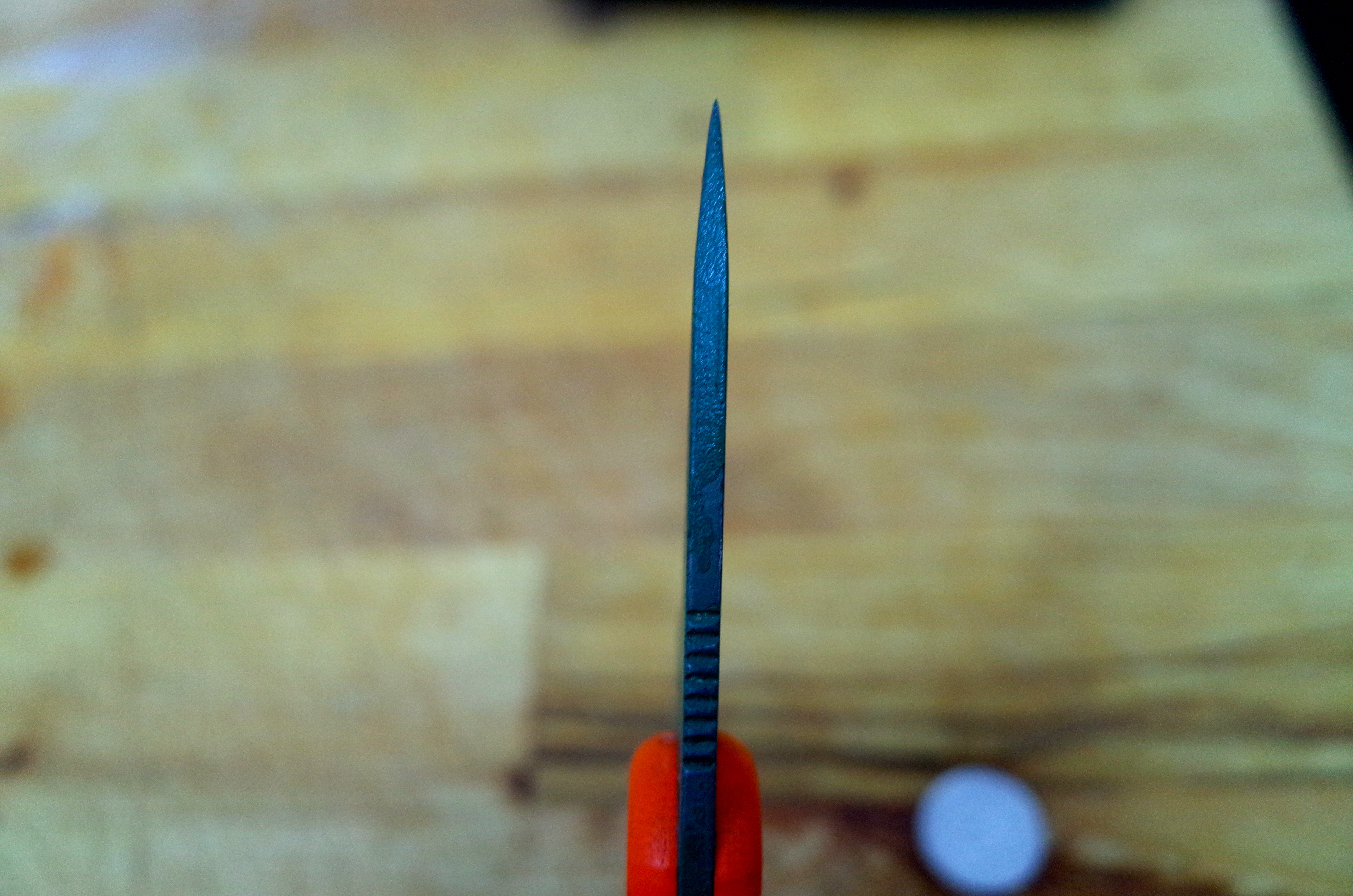 Smaller objections include the bolts on the handles, which are inset just a bit too much. This allows them to collect flesh and gore when butchering game or cutting up fish, and their little edges make this harder to clean than is strictly necessary. Another minor niggle is, as mentioned, the edge geometry. I’ve tried both a convex and a standard flat secondary edge (in several different angles), and neither really made much different in the difficulty of getting a seriously sharp edge on the Candiru. Folks who are better at sharpening than me will surely be able to do better, and I’m not sure there is any way to avoid the steep secondary angle which seems to be responsible for this while still preserving the great splitting characteristics and all-around burliness.