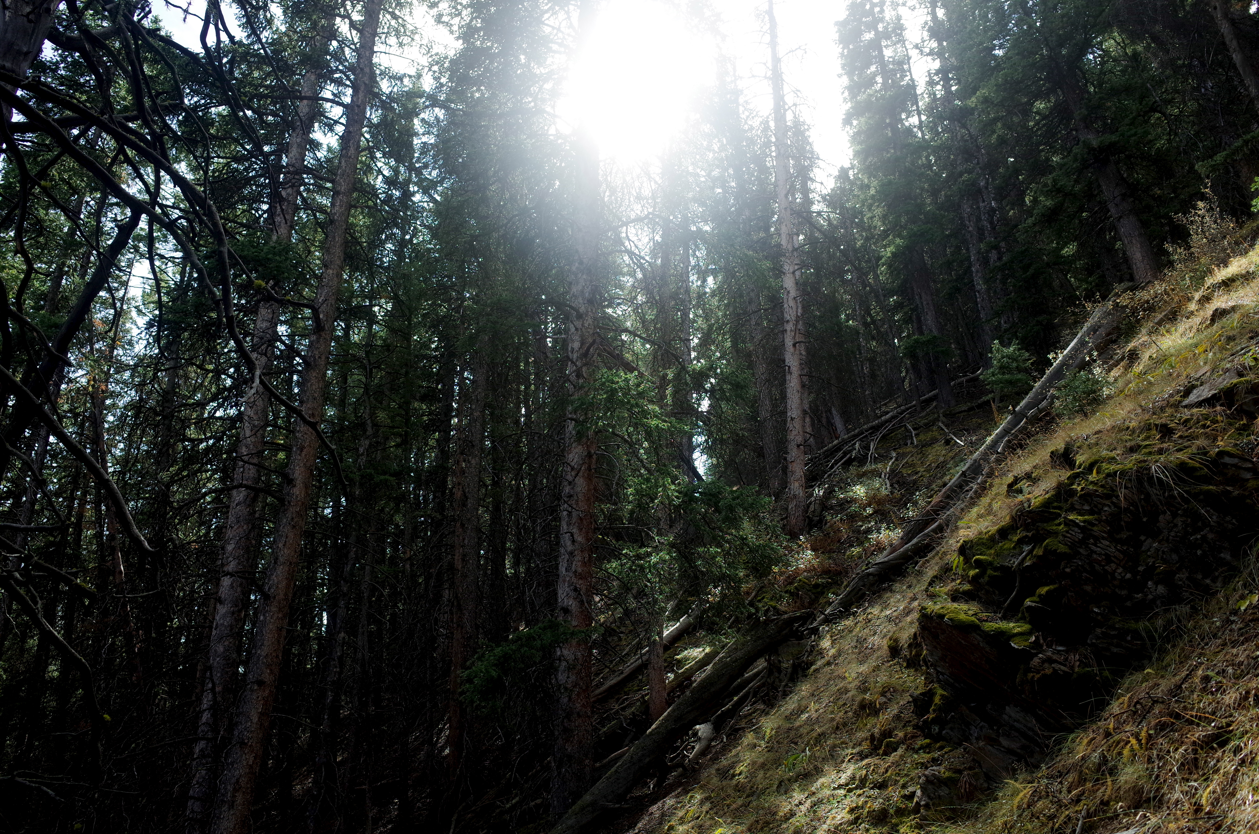 The ridge flattened out after almost two thousand vertical of intense, slow plodding. Games trails, replete with fresh scat and tracks, had been almost too abundant. It was hard to pick just one option to lead me to the crest of the ridge, where I’d be able to walk north, play the subtle, inconsistent wind, and ideally find some bedded animals. Another fresh game trail led just along the east edge, high enough to be easy going, far enough off the crest so that you wouldn’t be skylined, no matter the angle of the viewer. The forest was thick, but open underneath, light filtered by a tight green canopy of needles, ground almost devoid of greenery. Off-grey scaly pine trucks, six to twelve inches in diameter, made the intermediary between air a dirt a multivaried cathedral library of monochromatism, where I could see everything and nothing within 200 yards. Including a patch of static texture down the hill which engendered suspicion.