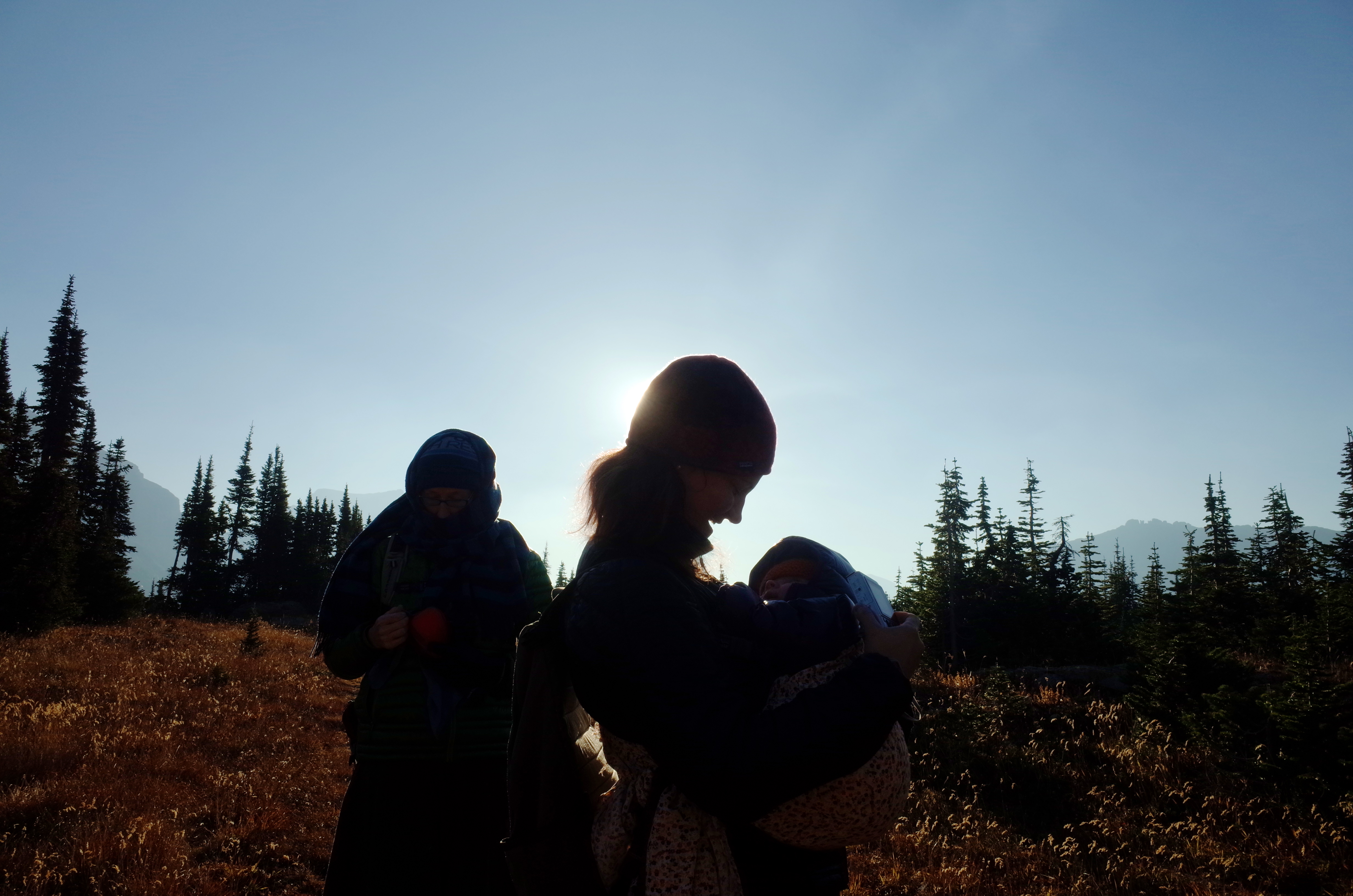 The most important practice is, naturally, for us. These outings are a lot more stressful not just because we have another living being to caretake, but because of the many added things we cannot well control. 40 minute feedings along the side of the road as evening grows alarmingly close are good for building patience and a detachment from particulars which I’ve largely avoided cultivating. Presumably it will come in very handy in a few more years.