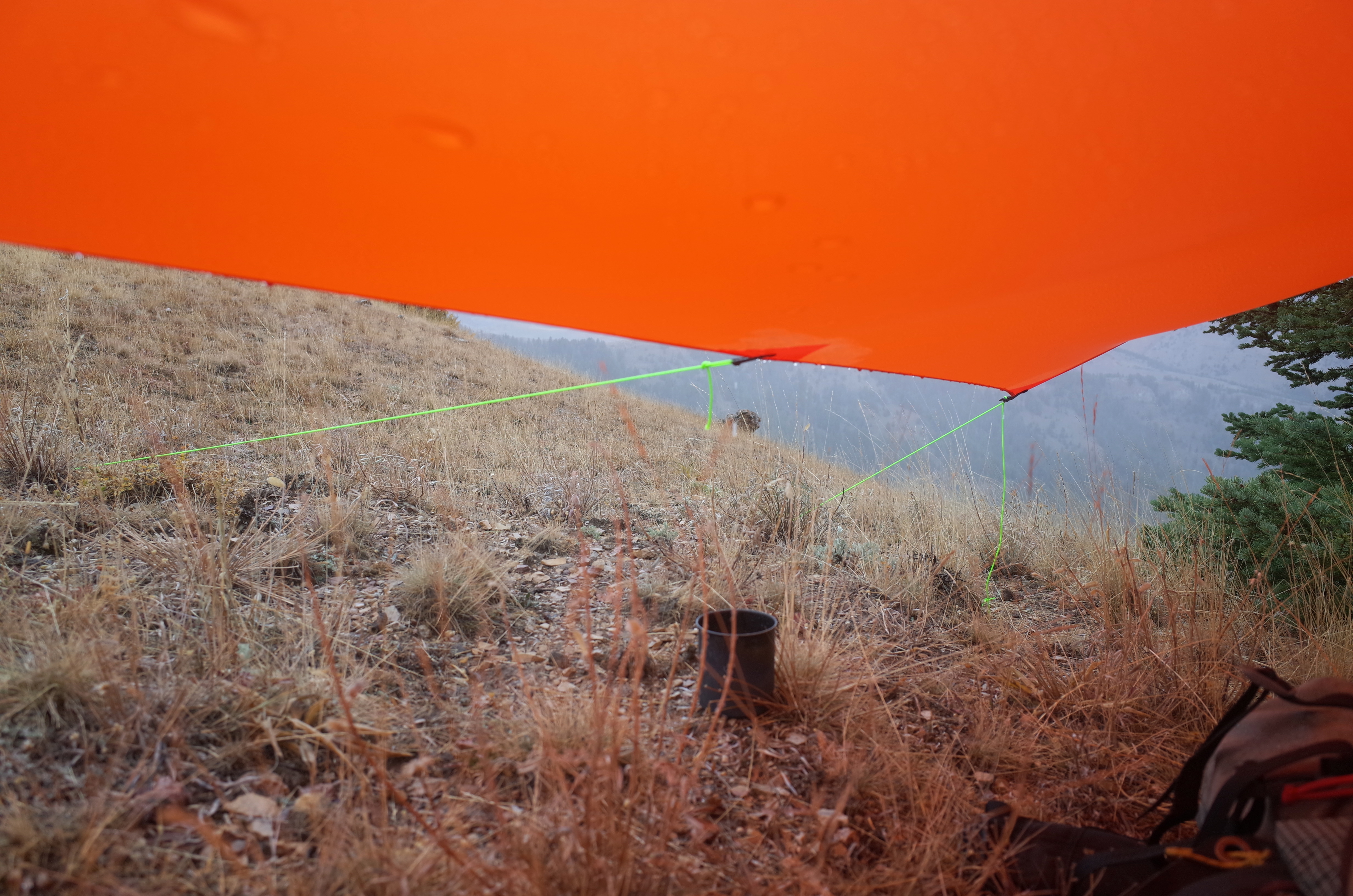 Camping with such a small tarp is quite practical, even in bad weather, but requires the use of good pitching technique and when the wind kicks up, trees for shelter. I took this one on my sheep hunt last month, and on both evenings had to repitch during the night to get more protection from blown precipitation. Had I been more conservative from the start that would not have been necessary. After each repitch I slept well and myself and my gear stayed dry.