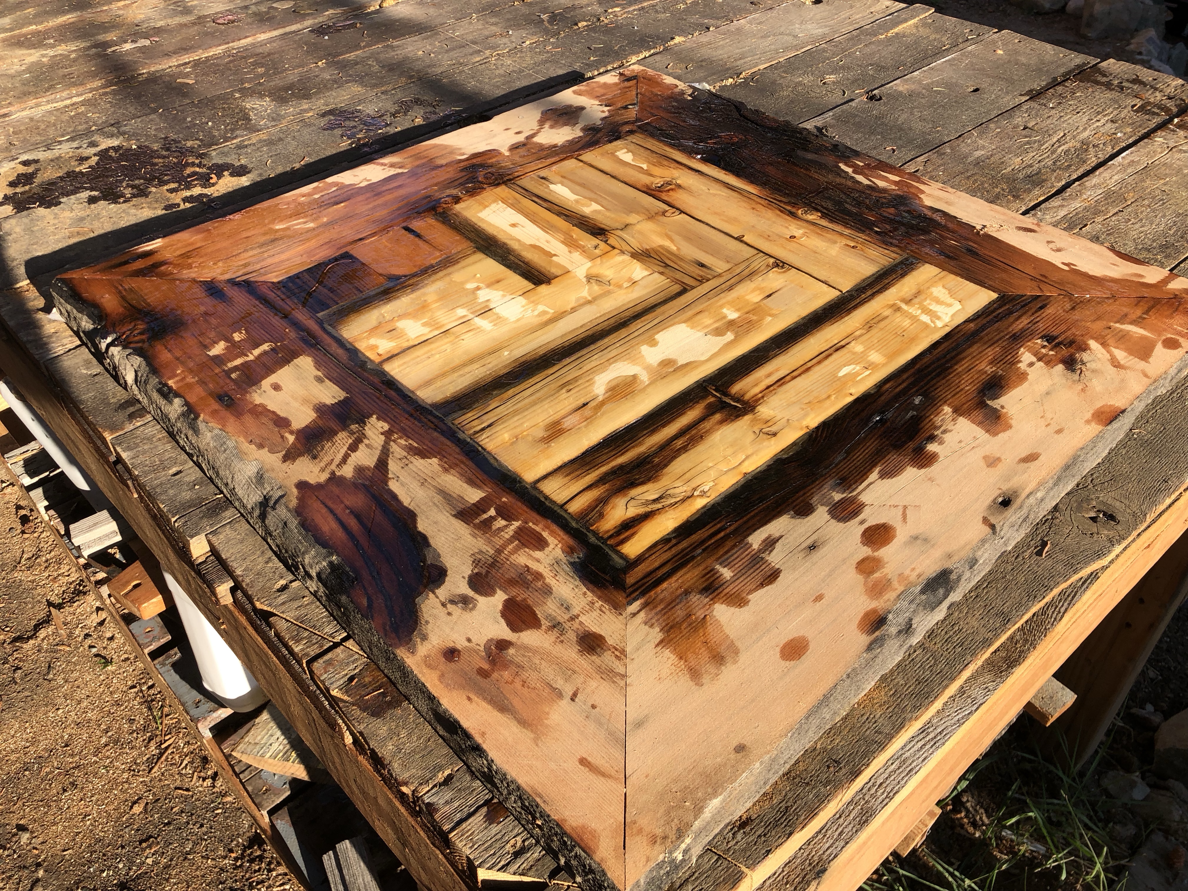 I neglected to photograph the base building process, which was similar to the top but even more tedious, as each side of the pedestal had to be finished, epoxied, cure, sanded, then repeat.