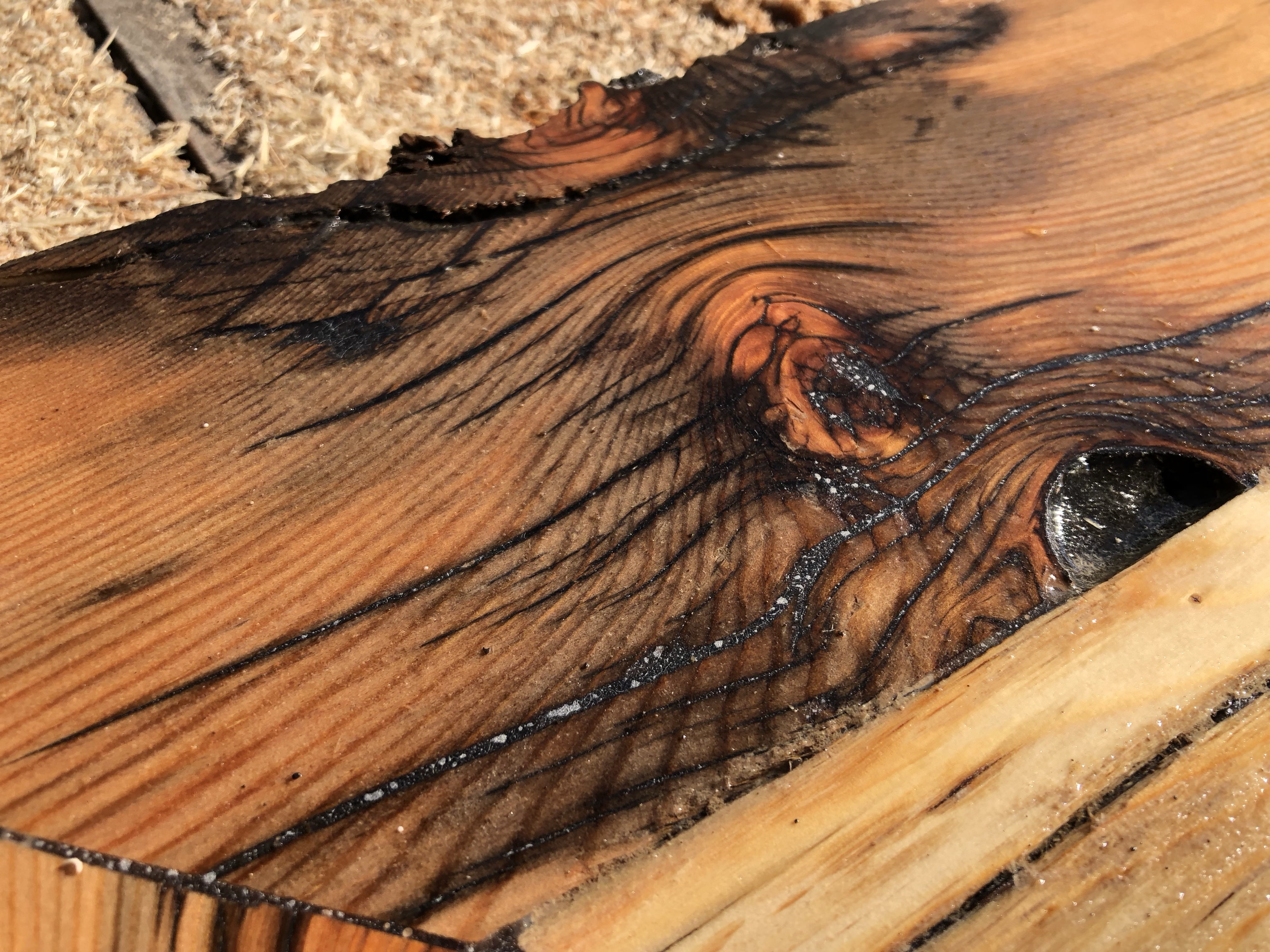 The epoxy cured while we were out of town for a week, and more planing and sanding got that back to flatish, with a ton of epoxy fill work to come. This was the project where I learned that the electric planer combined with epoxy and soft pine results in a ton of tear out, which made life harder.