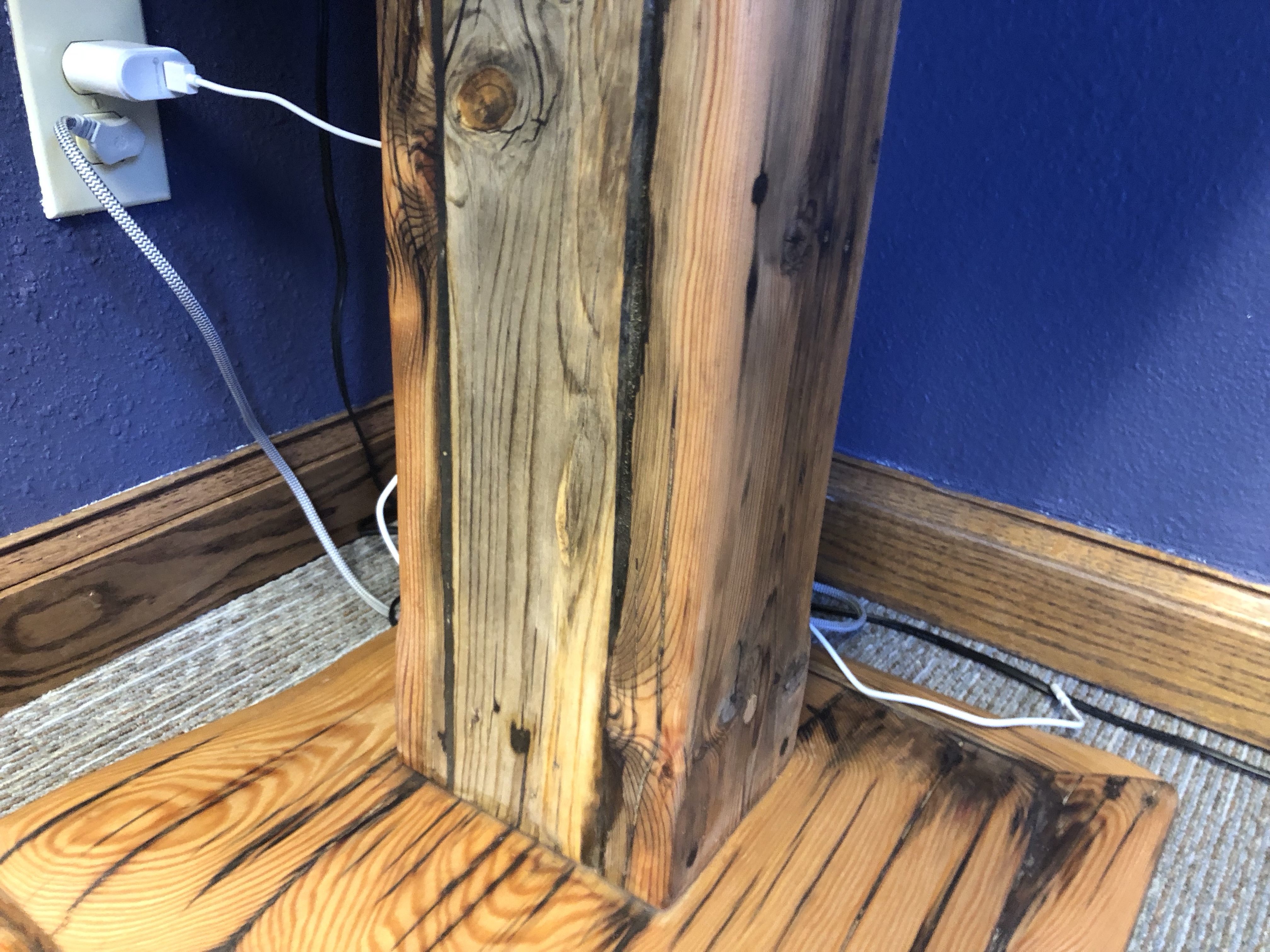 The added mojo of having this, my favorite project (of any kind) yet in my office cannot be underestimated. The only issue, which I anticipated, was in using undried wood, with the top, base, and to a much reduced extent pedestal having cracked in a few spots due to seasonal wood movement and drying. At some point this summer I’ll re-epoxy and finish the top, and probably base, and see what happens.