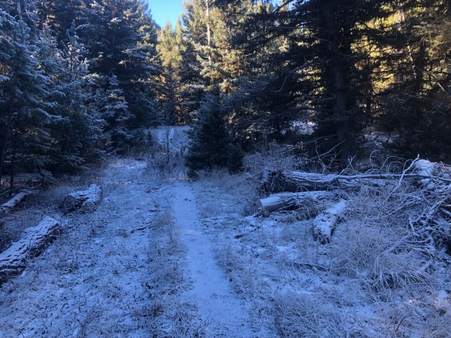 The hiking part of things felt less under control. When I arrived at the south end of Danaher Meadows the first night I was tired, chafed, and scared. Food, and warm sleeping bag, and some reflection reminded me that it had been a while (over a year) since I had done a non-family backpacking trip, and over two years since my last backpack hunt. Lack of practice doesn’t just thrash the legs and rub the hips, it stretched the mind. I was ready to take any excuse to cut the trip short, but saw no deer or elk the next day (in either Danaher or the Basin). The whole trip was prominent for being remarkably still, a good thing for the relative lack of windchill, rather harder for the extent to which that highlighted the empty un-humanness of the Bob right on the edge of winter.